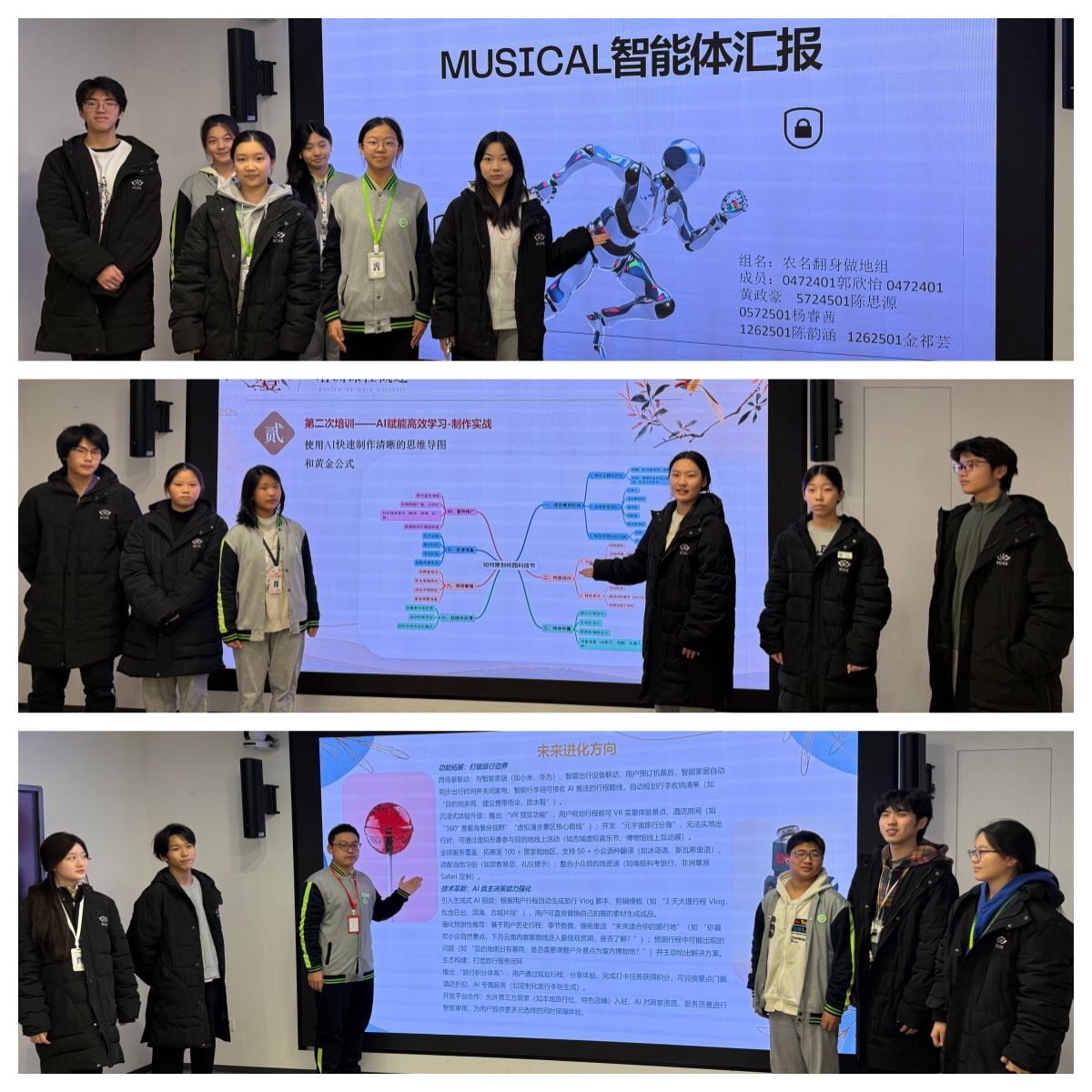 结业仪式上,智能体作品成果汇报成为最受关注的核心环节。五个学员小组依次登台,展示了兼具创意价值与实用属性的智能体作品,充分展现了将数智技术与专业学习、日常生活融合的创新思维:扎根财经专业的“合法避税智能体:智享未来”,以专业视角破解财税难题;贴近生活场景的“日常生活智能体:炸厨房小帮手”,用趣味交互解决烹饪痛点;聚焦艺术体验的“MUSICAL智享生活智能体”,让AI成为欣赏音乐剧的指路明灯;主打知识传播的“稗史有声智能体:历史说书人”,以音频形式让冷门历史“活”起来;服务出行需求的“旅游智能体:小内卷”,为个性化行程规划提供智能方案。