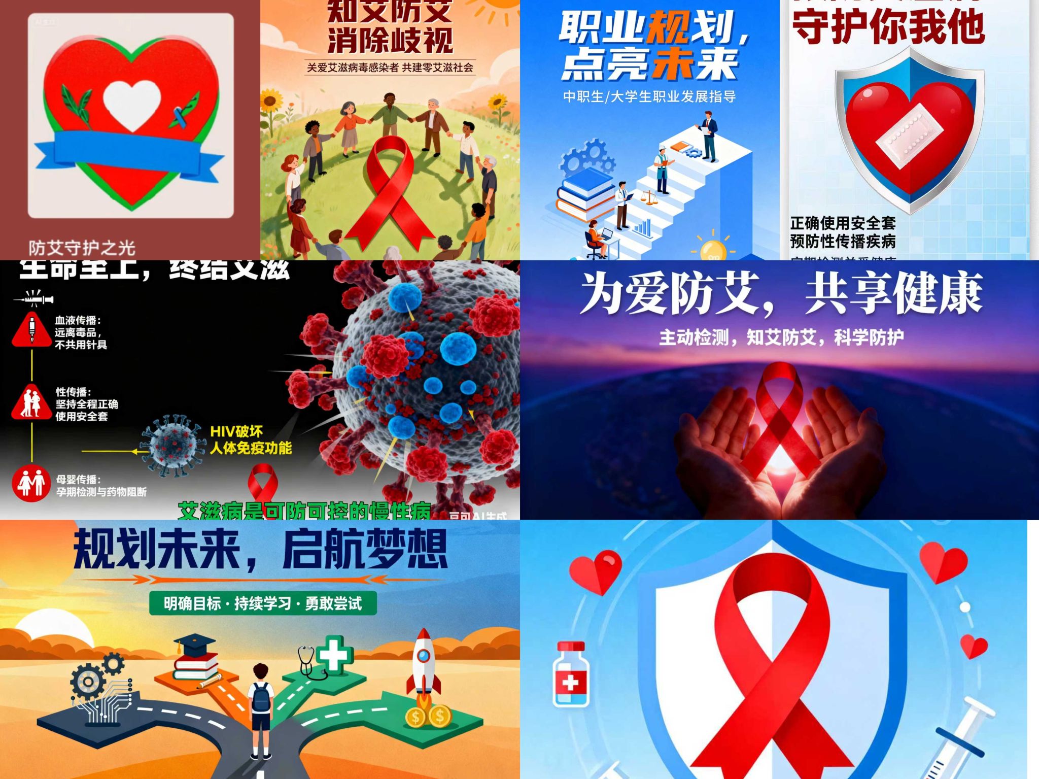 AIGC应用展示作为本届活动的另一大主题活动,学生围绕防艾滋宣传和大学生职业规划两大主题利用AI工具创作创意海报、原创歌曲等AIGC作品,呈现了技术素养与人文素养的融合成果。此次活动切实提升了学生在数字工具应用、经典文本深度解读、创意表达以及团队协作等多方面的核心能力。