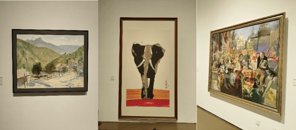 牟斐凡同学:“步入第十三届上海美术展展厅,一场跨越时空的艺术对话就此展开,传统与当代的碰撞直击人心。拼贴《共产党宣言》文献的装置作品尤为震撼,泛黄纸页与红色标识勾勒百年思想浪潮,让厚重的革命历史在当下鲜活起来。油画山水以粗犷笔触晕染山野气韵,尽显"外师造化,中得心源"的当代诠释,为喧嚣都市人辟出一方触摸自然本真的净土。展览更藏着艺术语言的多元探索:写意水墨大象朴拙雄浑,高饱和色彩的白鹅油画极具张力,机械复古装置突破审美边界。所有作品皆植根海派文化,兼容中西、融汇古今承载着创作者对本土现实与时代精神的深刻思考。这场展览不仅是视觉盛宴,更让我读懂艺术始终与时代同频,在传承与创新中成为连接过去、现在与未来的桥梁。”