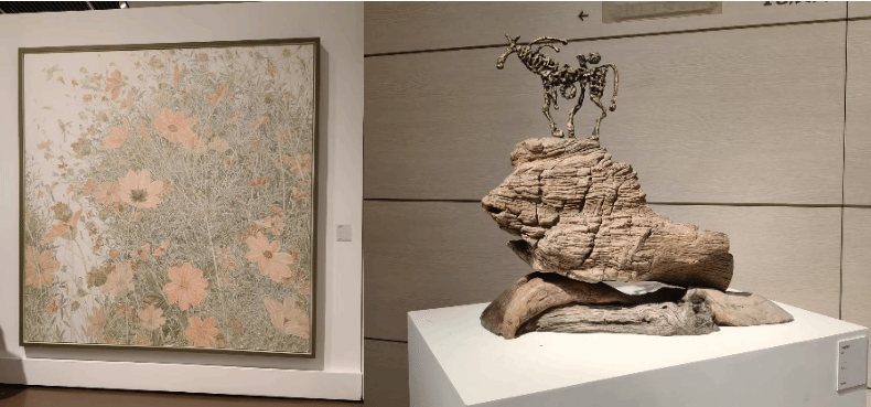 本次参观活动以 “发现美、记录美、创造美” 为核心脉络,为同学们搭建了多层次的艺术感知平台。在 “发现美” 环节,同学们安静有序地穿梭于各展厅之间,认真观赏中国画、油画、版画、雕塑、数字艺术等多元门类的参展作品。不少同学驻足凝视、轻声交流,在潜移默化中接受艺术熏陶。
