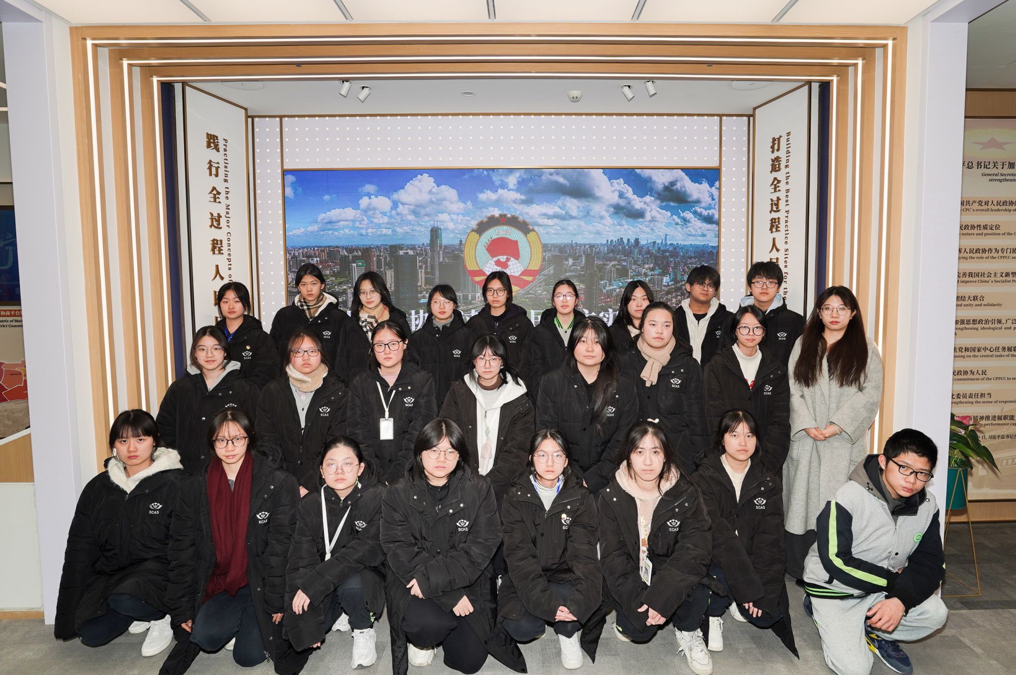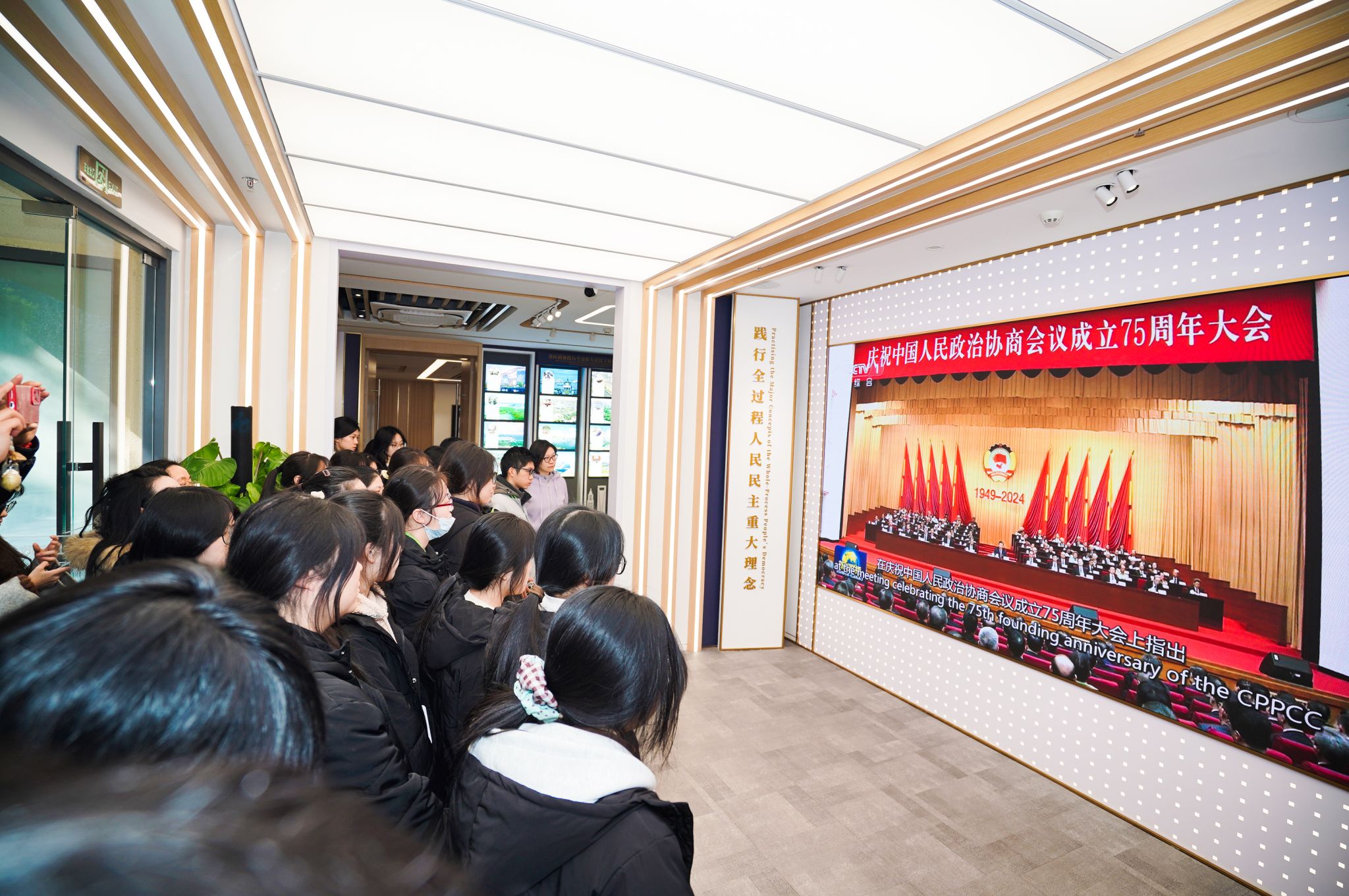 “民主如何贯穿于人民生活的全过程?”带着这样的思考,上海商业会计学校24级中高贯通大数据与会计2班的同学们走进实践点的各个展区,他们不再是课堂中的听众,而是民主实践的探索者、思考者与体验者。