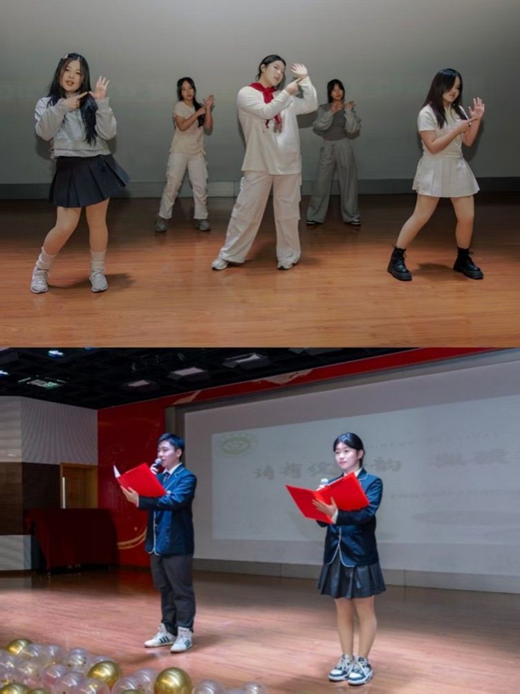 活动在舞蹈社原创开场舞《Kitsch》中拉开帷幕,舞者以动感律动点燃全场。主持人0562401劳世宸、1752401陈菲圆深情阐释“十四五”收官与“十五五”开局的时代意义,呼吁学子以青春之姿扬帆新程。
