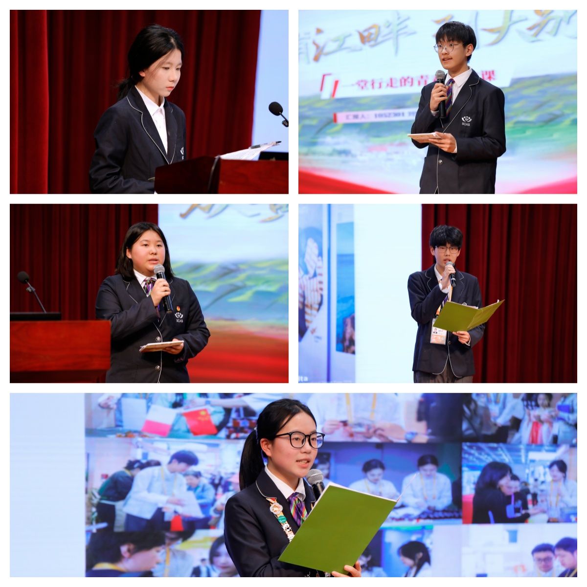 学生代表们的分享同样动人。徐嘉逸、韩宜玲讲述德国研学“共育·共行·共进”的成长故事,刘悦、姚盛杰分享六安实践“从黄浦江畔到大别山下”的青春思政课感悟,斯鑫妍、张若水、李家文诉说进博会志愿服务“以心践行志愿,以行联结中马”的责任担当。