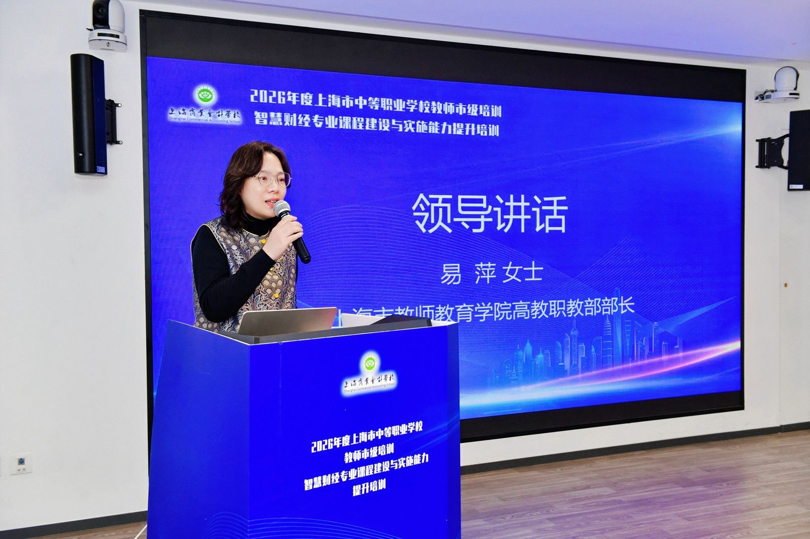 上海市教师教育学院高教职教部部长易萍在讲话中充分肯定了本次培训的重要意义。她强调,职业教育教师队伍建设是提升人才培养质量的核心环节,智慧财经作为新兴方向,对教师的课程设计能力、数字素养和产教融合意识提出了更高要求。她勉励参训教师以此次培训为契机,深化专业理解、拓宽教学视野,为上海中职财经类专业高质量发展贡献智慧力量。