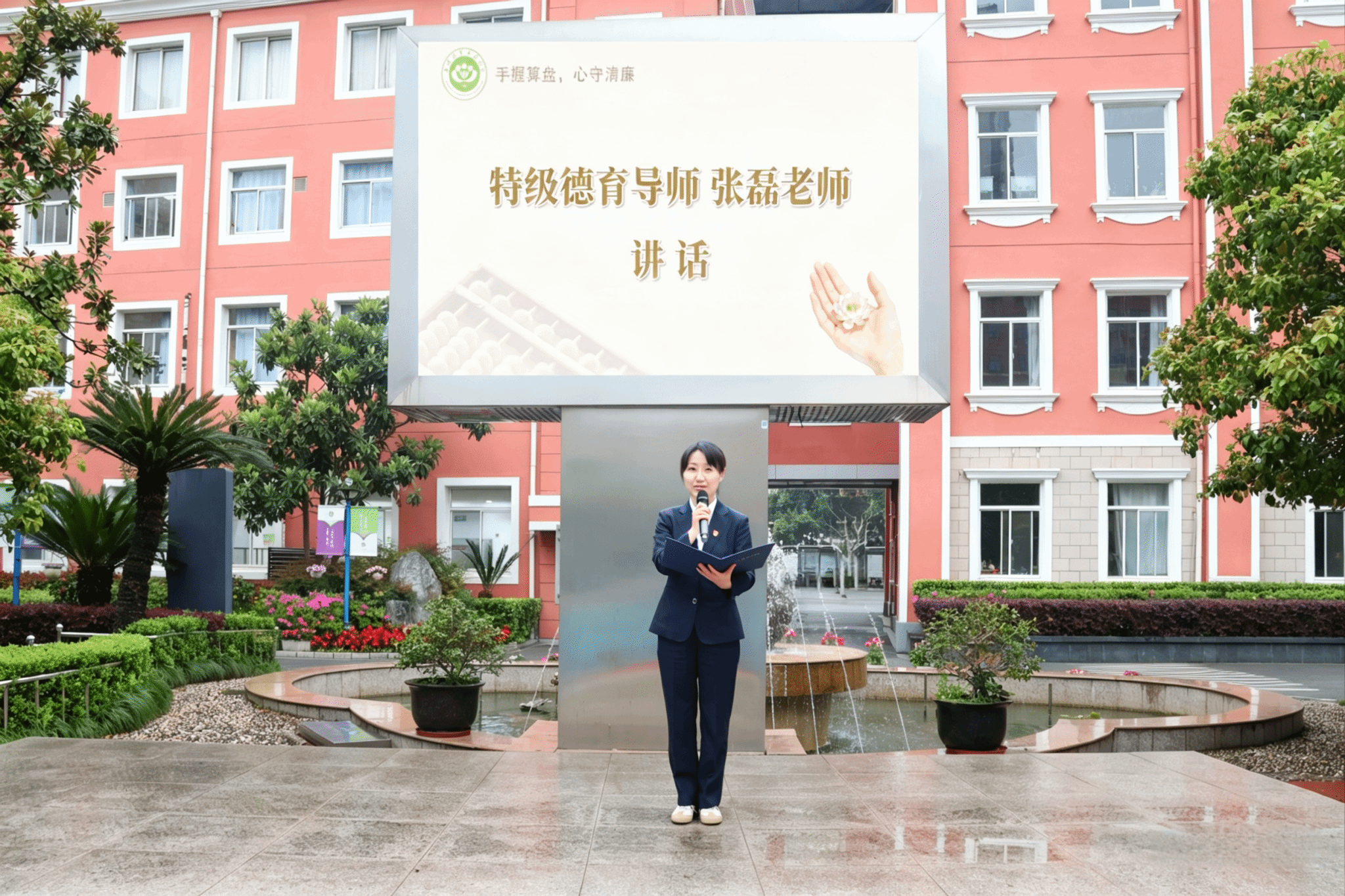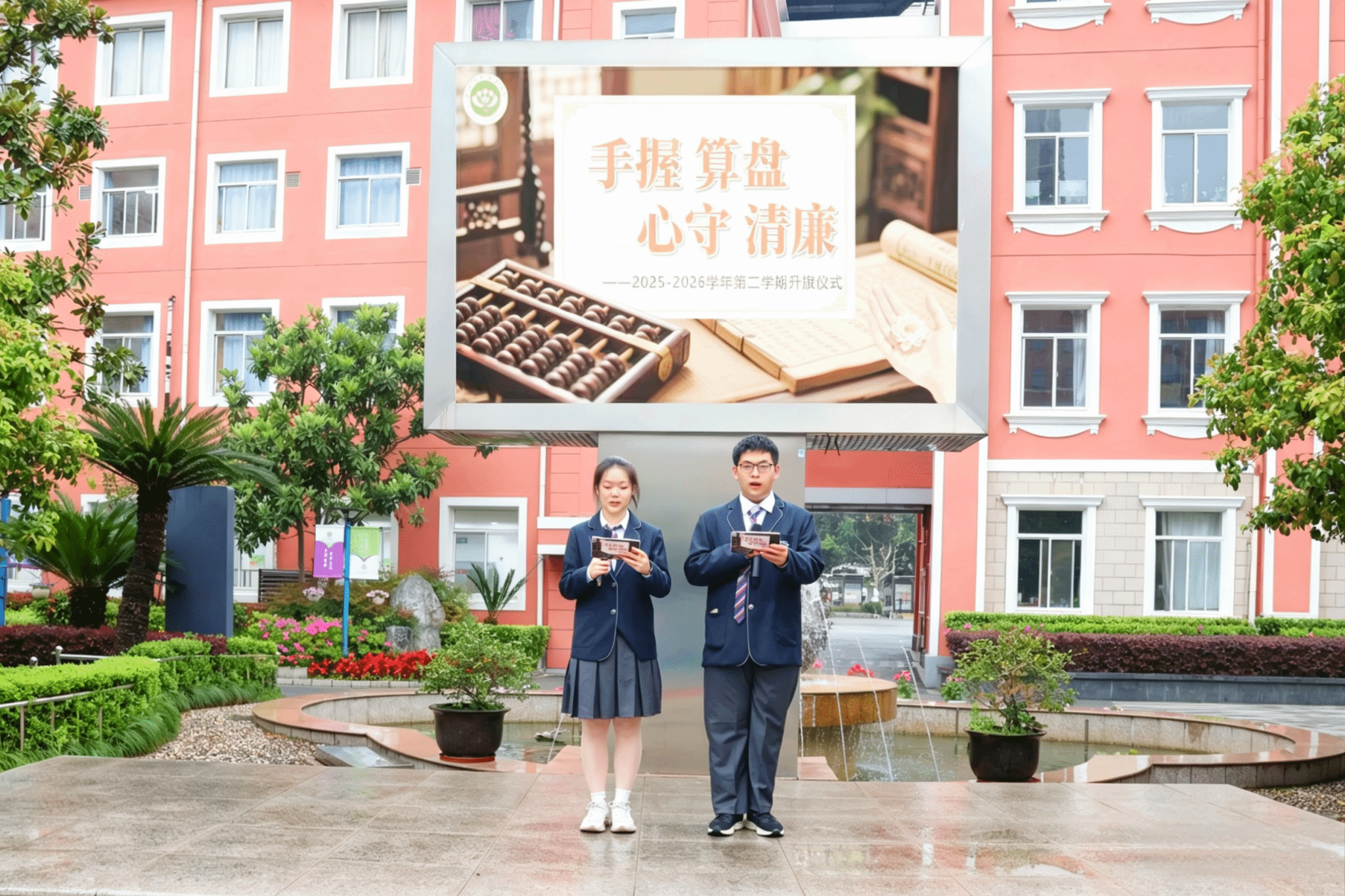 为厚植校园廉洁文化根基,培育清荷学子清廉修身、诚信笃行的职业素养,4月13日清晨,黄浦校区举行“手握算盘,心守清廉”主题升旗仪式,正式拉开第九届清荷廉洁文化月帷幕。学校党委书记陈震,副校长张志华,纪委书记徐帼芳,副校长龚丽,党委委员、党办主任林蔚,全国“五一劳动奖章” 获得者张磊女士,以及全体师生共同参与本次仪式。