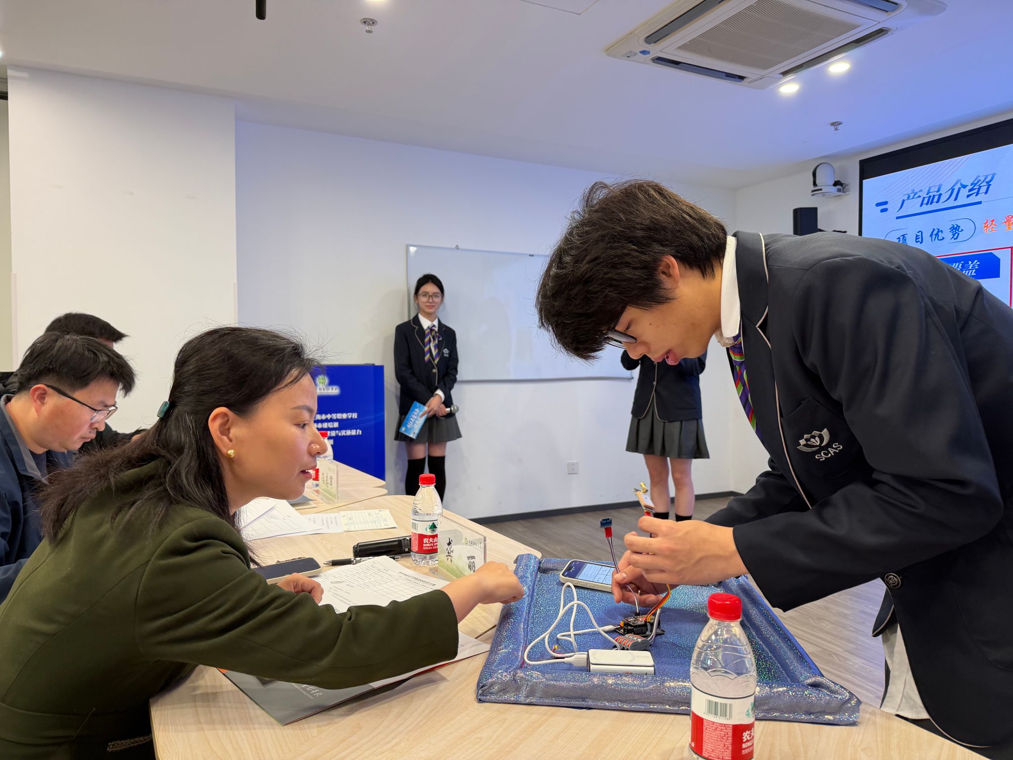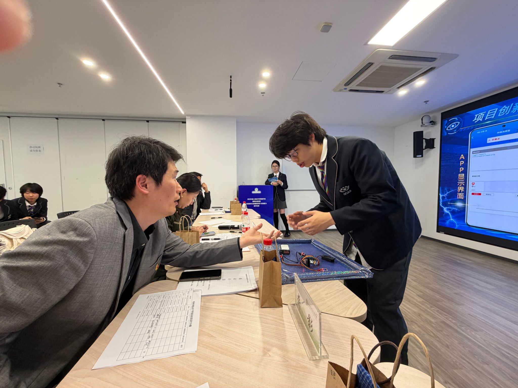 路演现场,各团队依次登台,围绕项目背景、核心创意、应用场景、社会价值与发展前景展开精彩阐述。同学们精神饱满、表达流畅,将生活中的观察思考转化为具体可行的创新方案。评委老师们认真聆听、细致点评,从创新性、实用性、可行性、市场前景、团队执行力等维度进行专业指导与打分,在肯定亮点的同时,提出针对性优化建议,帮助参赛团队完善思路、明晰方向。整场活动秩序井然、氛围热烈,处处洋溢着创新与活力。