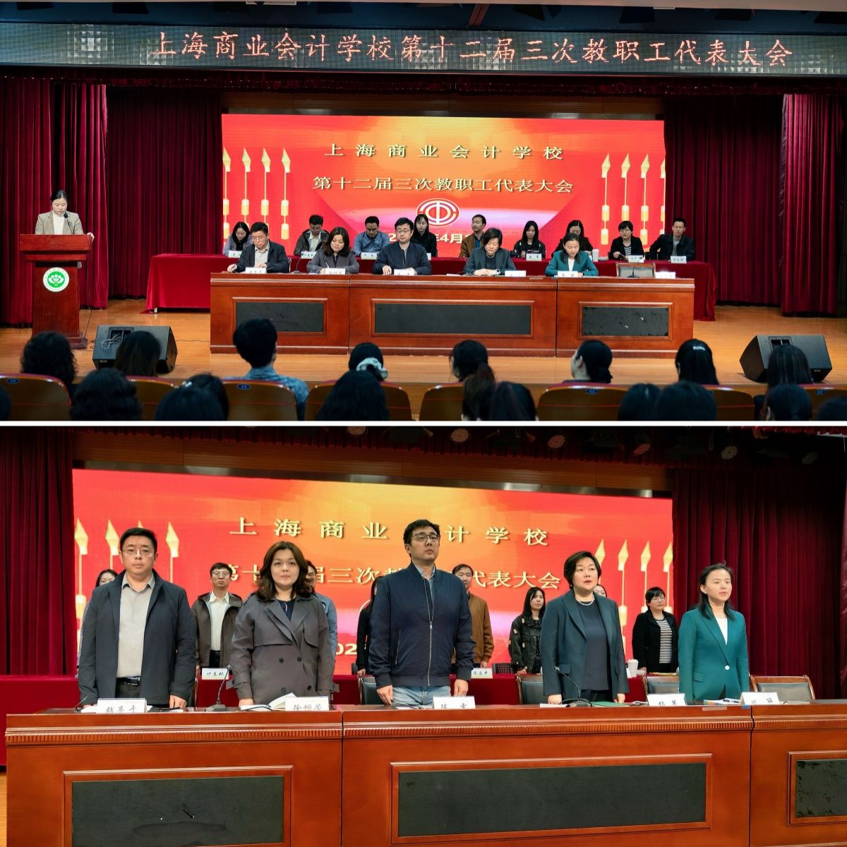 2026年4月17日下午,上海商业会计学校分议程召开了第十二届三次教职工代表大会和第十五届三次工会会员代表大会。全体代表齐聚一堂,共商学校发展大计,扎实推进“十五五”期间教育高质量发展,确保各项工作开好局、起好步。