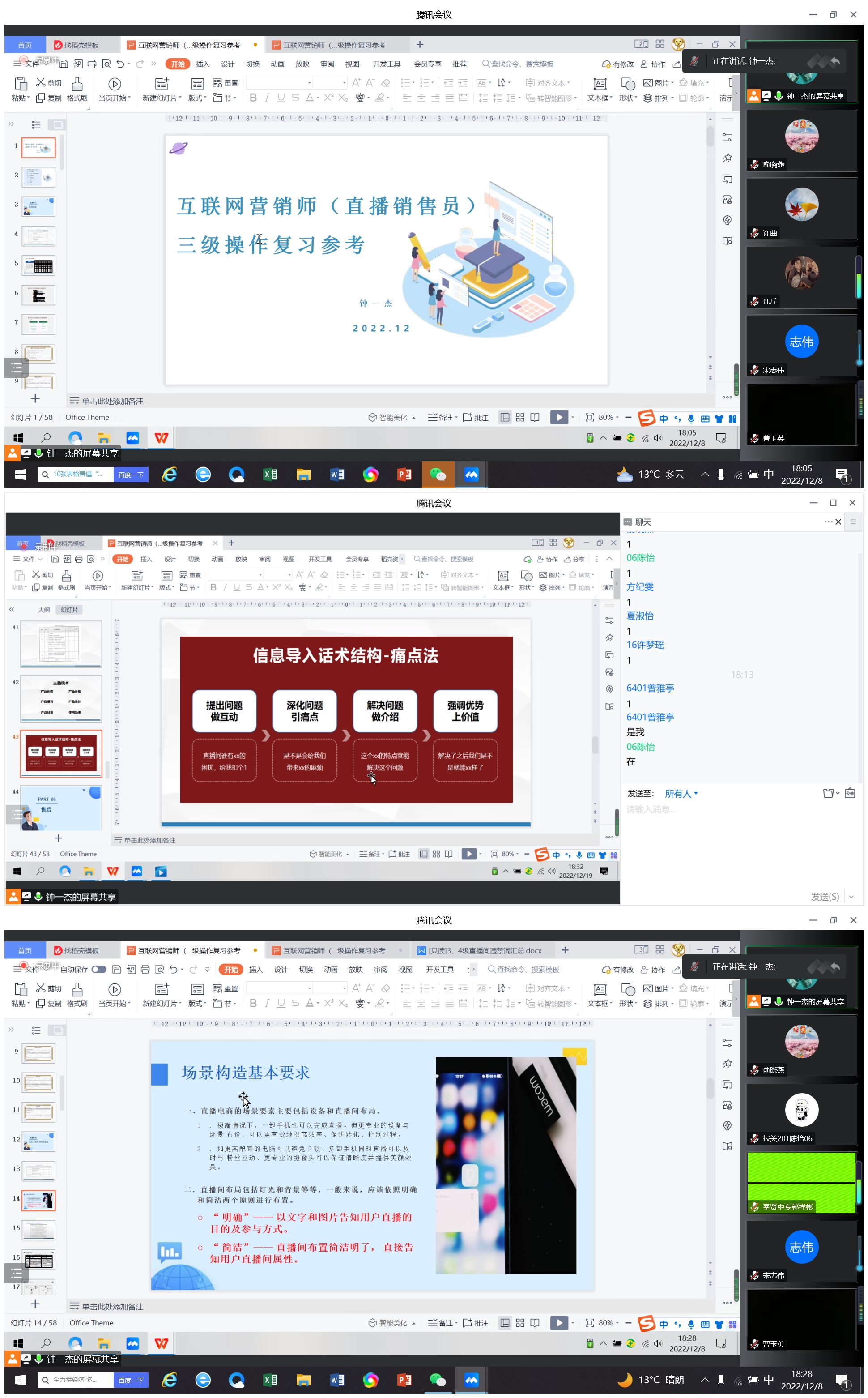2022年12月8日和20日晚,由上海商学院高等技术学院交通路院区高职教务组织,上海行健职业学院钟一杰老师主讲的互联网营销师考证辅导讲座,通过腾讯会议app于线上开讲,报关201班17位考证学生听讲。同学们通过聆听辅导讲座,对此次考证的流程有了初步印象,也了解到了考证实操模块中大部分可能出现的试题类型,收获颇多。