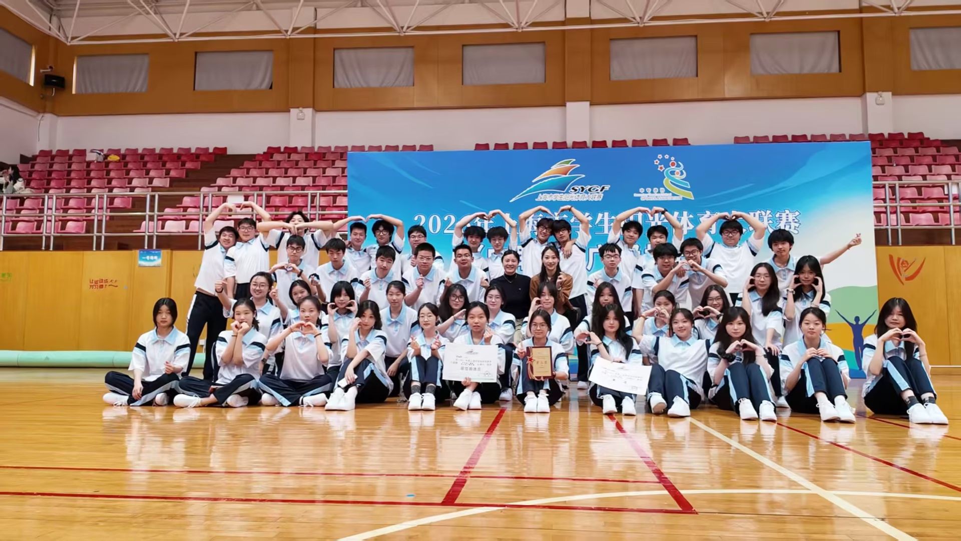 启动仪式后的赛场上,我校学子着装统一、步伐铿锵、意气风发,每一节伸展、每一次转体都标准利落、整齐划一,完美展现了日常训练的扎实成果与清荷学子昂扬向上的精神风貌,赢得了现场评委与各参赛学校的高度认可,最终斩获佳绩、载誉而归。