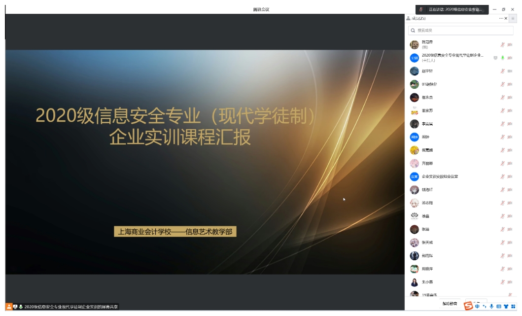 12月30日,网络信息安全专业现代学徒制企业实训课程汇报在线上举行。上海商业会计学校副校长范荣、信艺教学部主任和专业教师、天融信网络技术有限公司企业专家以及2020级网络信息安全专业全体学生参加了此次线上研讨。