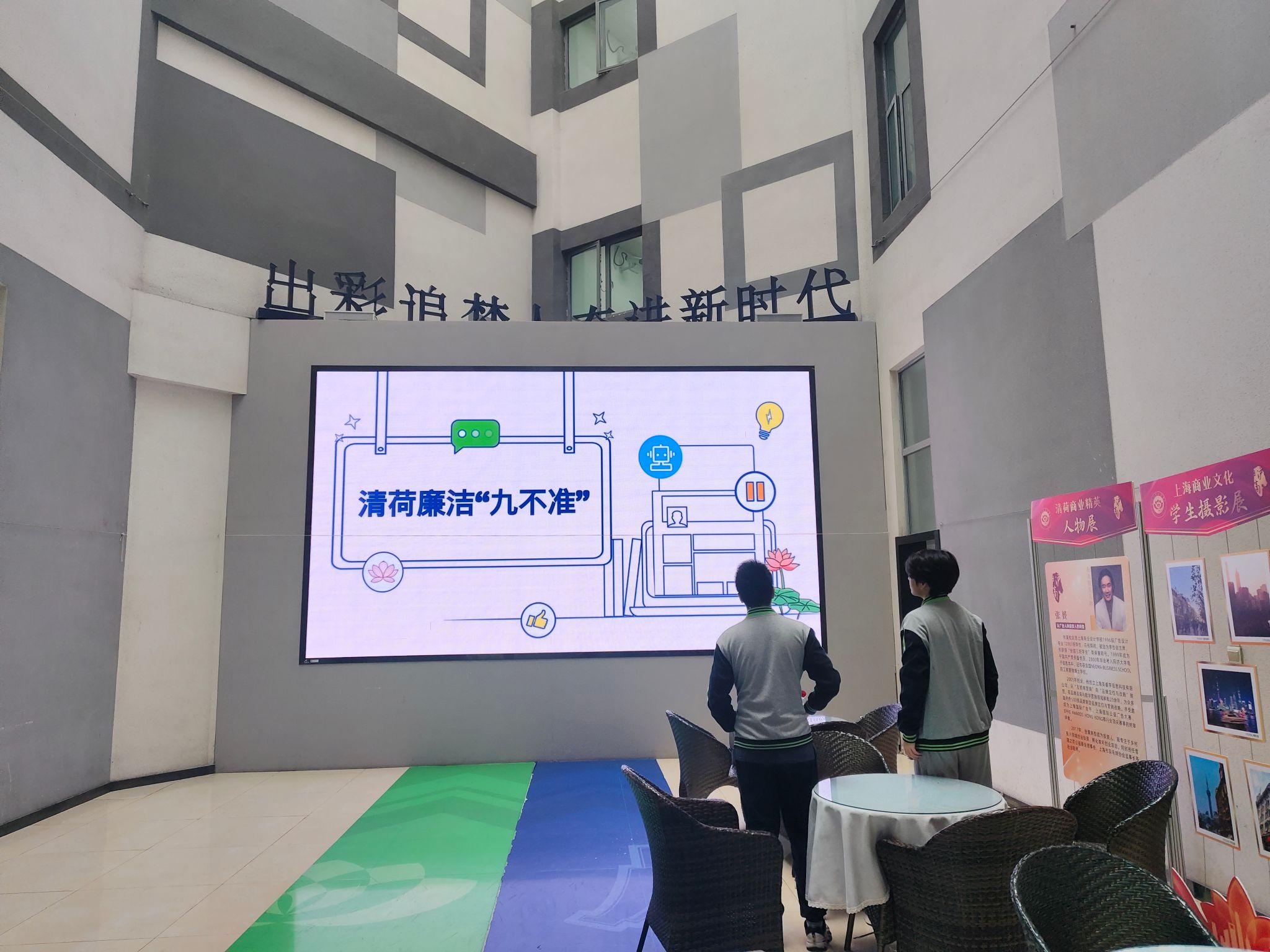 四月是第九届“清荷”廉洁文化月。校区积极参与,厚植廉洁文化土壤。综合党支部通过合作制作廉洁非遗瓷刻作品、廉洁书法绘画等,引导师生强化廉洁自律自觉,彰显“廉洁自律”主题核心。各班级通过制作廉洁绘画、视频、黑板报,以及召开主题班会等形式,让廉洁理念入脑入心。同时,在大屏幕循环播放清荷廉洁“九不准”视频,营造“人人讲廉洁、事事守底线”的浓厚氛围。