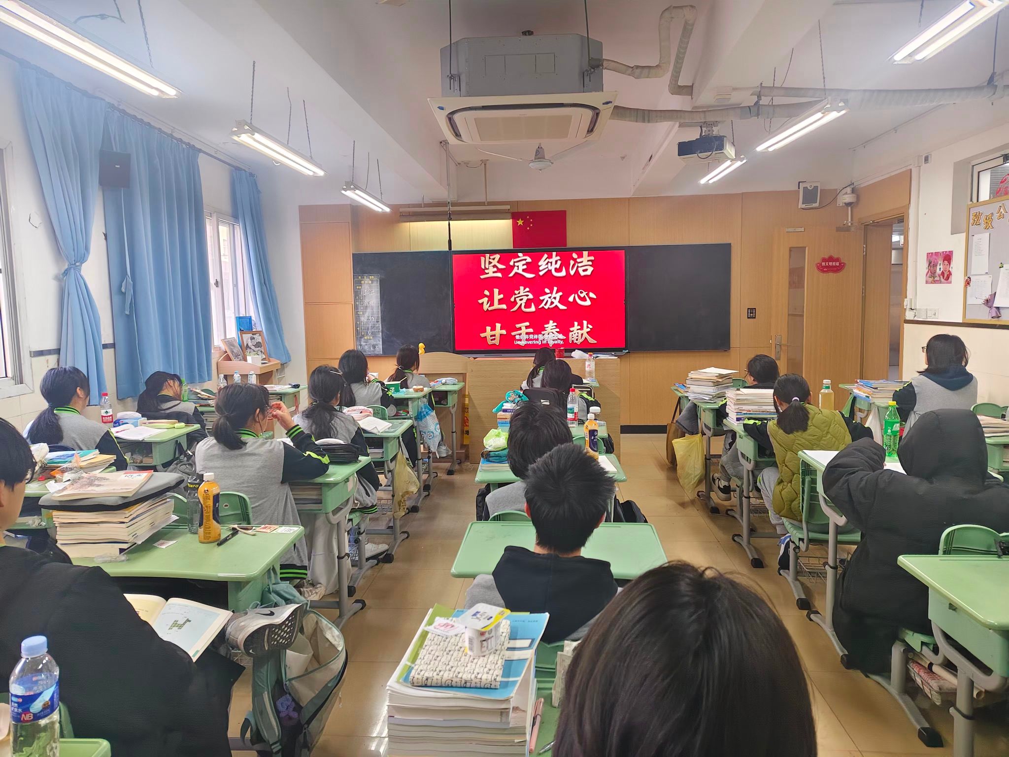 为培养学生良好行为习惯,校区开展了行为规范随机抽查活动,深入各班教室检查学生行为规范,对不符合要求者开具违纪单。4月27日至28日为期中考试时间。为严肃考风考纪,校区于4月20日通过晨会进行考试动员和诚信教育,鼓励学生认真复习备考,争取理想成绩。