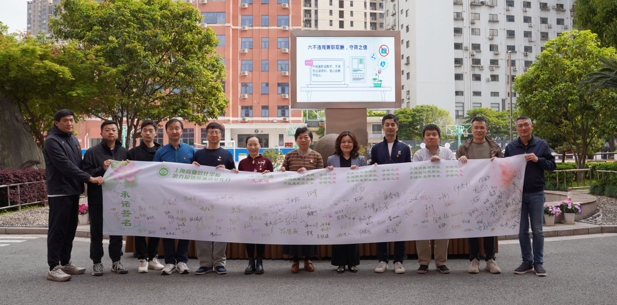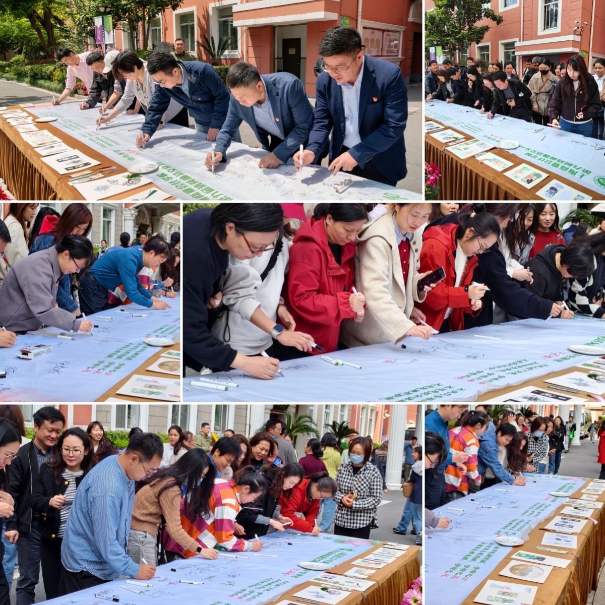 党课后,学校全体参会党员干部来到荷花池旁,开展清荷廉洁“九不准”承诺签名活动。大家以签名为誓、立誓诺廉,把正确政绩观和廉洁自律要求刻在心上、落在行上,进一步筑牢思想防线、坚守纪律底线。前期,由学校党办拟定清荷廉洁“九不准”,工会组织面向全体教职工征求意见,各工会小组积极响应,组织教职工围绕岗位廉洁风险点展开讨论,最终凝练形成共识性较强的“九不准”条款,并由数智技术教学支部配合制定短视频在校园屏幕展示播放。