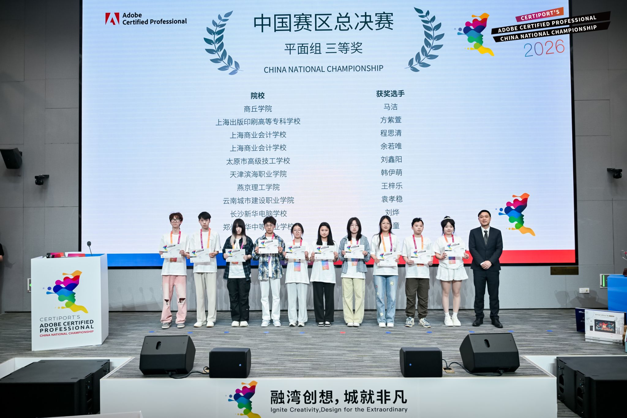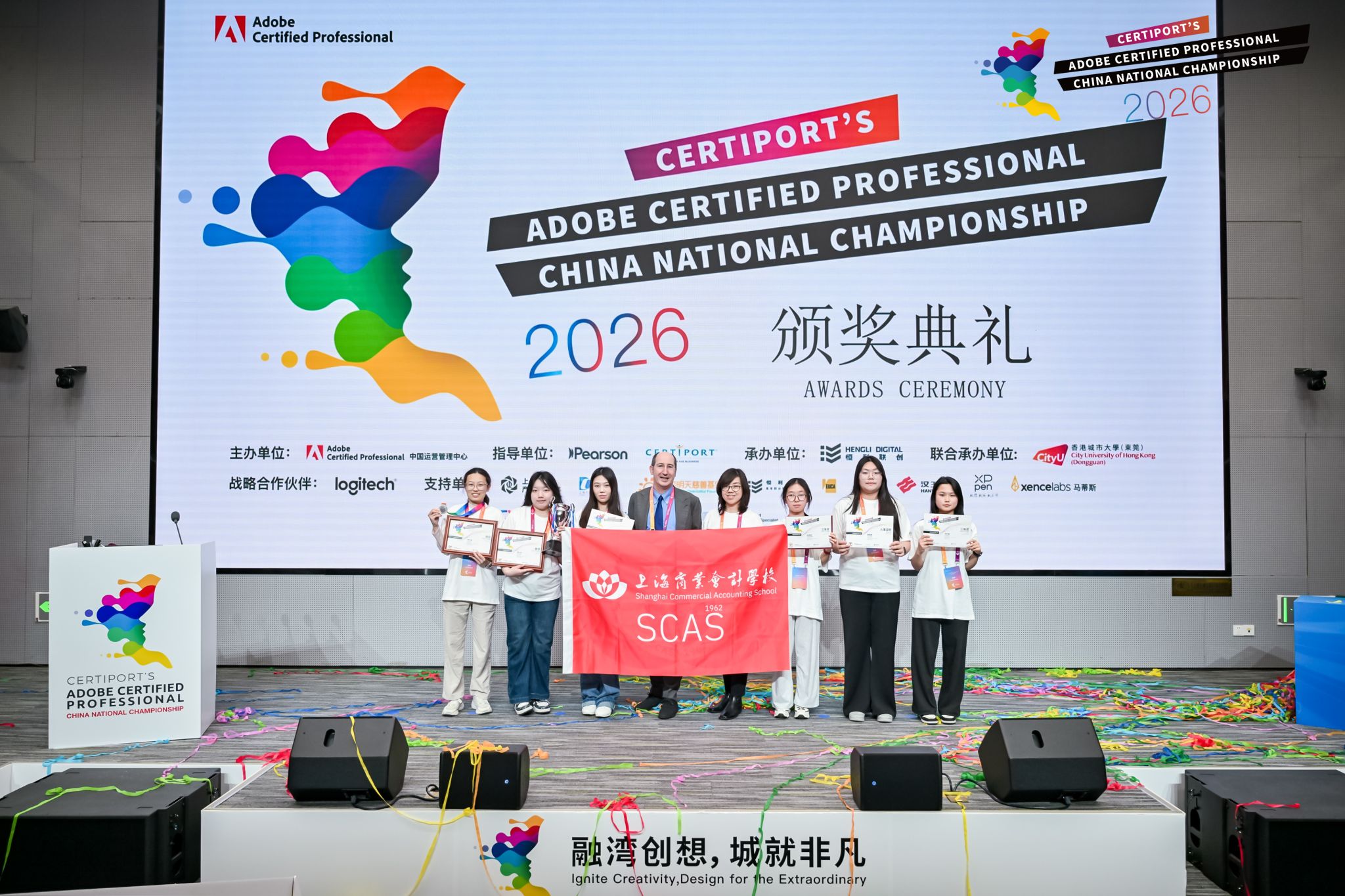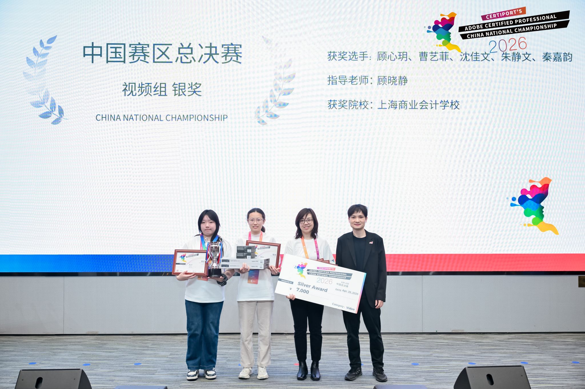 近日,备受全球设计领域瞩目的ACP 世界大赛(Adobe Certified Professional World Championship)中国赛区总决赛在香港城市大学(东莞)圆满落下帷幕。本届ACP世界大赛竞争空前激烈,经过省赛的激烈角逐,上海商业会计学校共有4组学生入围中国总决赛,由曾贞、石佳玉两位老师带队,五名清荷学子代表学校出征国赛。我校学子凭借扎实的专业功底、出色的创意设计能力与稳定的现场发挥,在全国众多优秀参赛队伍与选手中脱颖而出,一举斩获视频类银奖 1 项、平面类三等奖 2 项,以亮眼成绩展现清荷学子风采与学校专业教学实力。