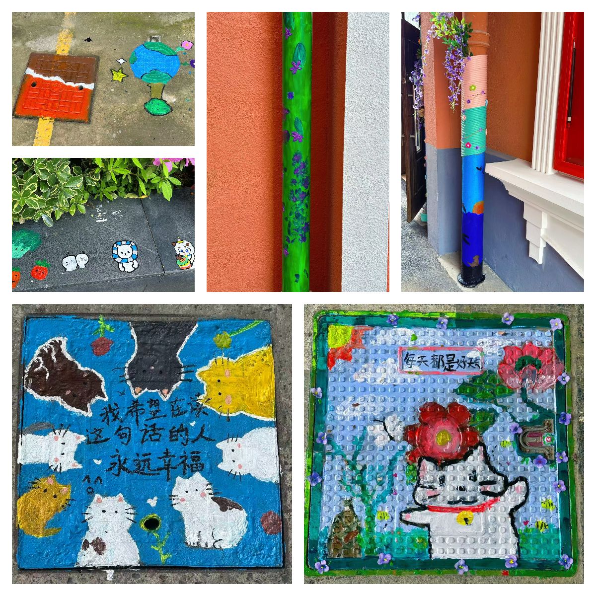除“栖心苑”的焕新改造外,本次心理季还开展了“井上添花”校园美化活动。引导学生以创意赋能,对校园内的井盖、水管、树木挂牌等公共设施进行创意彩绘与装饰,让原本单调的角落成为传递温暖的心理疗愈景观。
