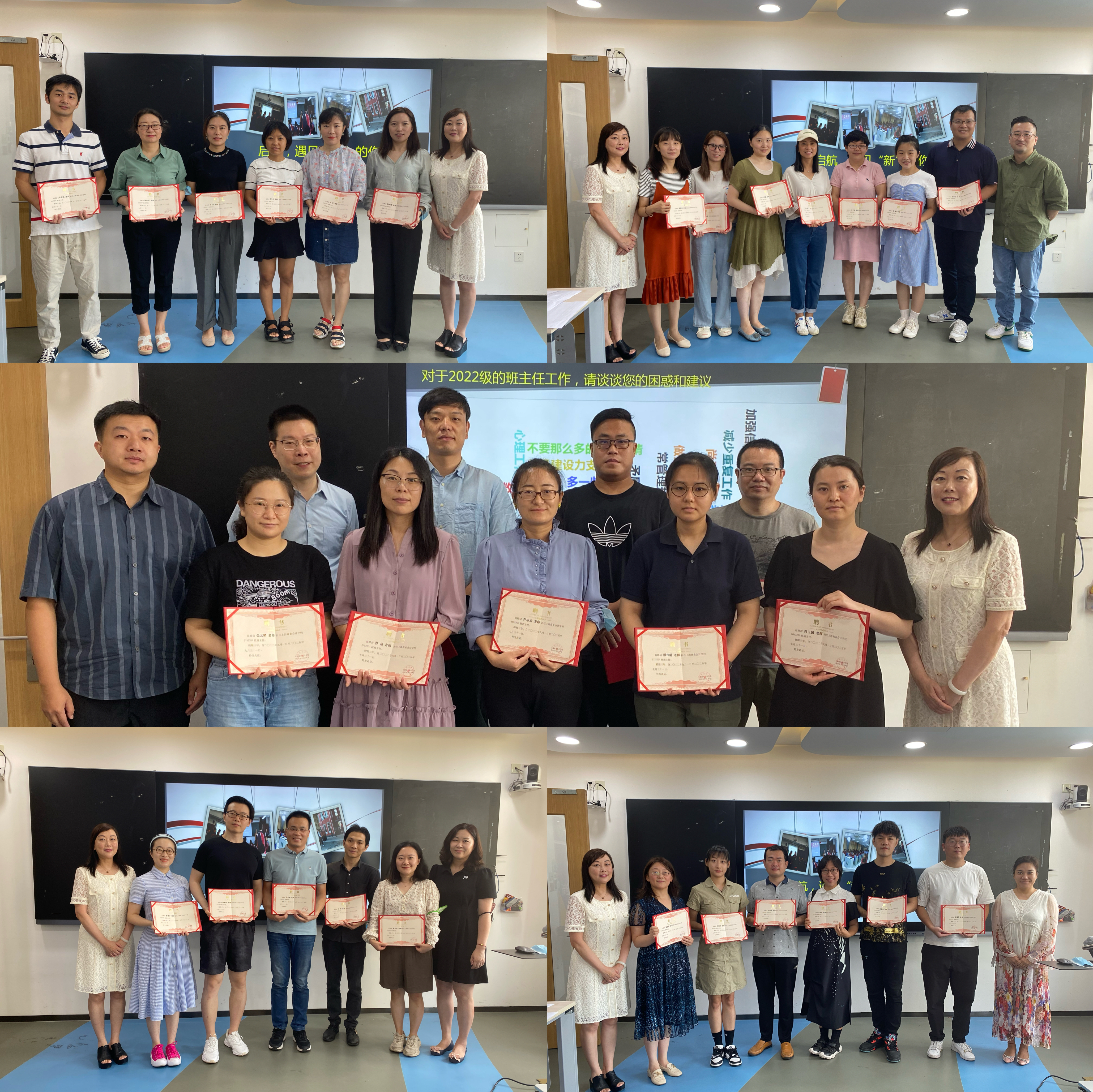 一天的培训涉及学生校园生活的方方面面,内容密集而紧凑,经贸二部班主任李亮子老师在会后感言道,今天的2022级新任班主任培训干货满满,来自不同部门的行政教师代表就学生日常管理、教务教学管理、学生心理疏导、校园常态化疫情防控工作等方面进行交流讲解。班主任工作是技术活儿也是艺术活儿,班级管理涉及方方面面,班级是集体也是舞台,班主任既要帮助学生搭建展示自我的舞台,也要尊重学生需求、引导学生成长。让还是萌新班主任的我有了努力的方向。