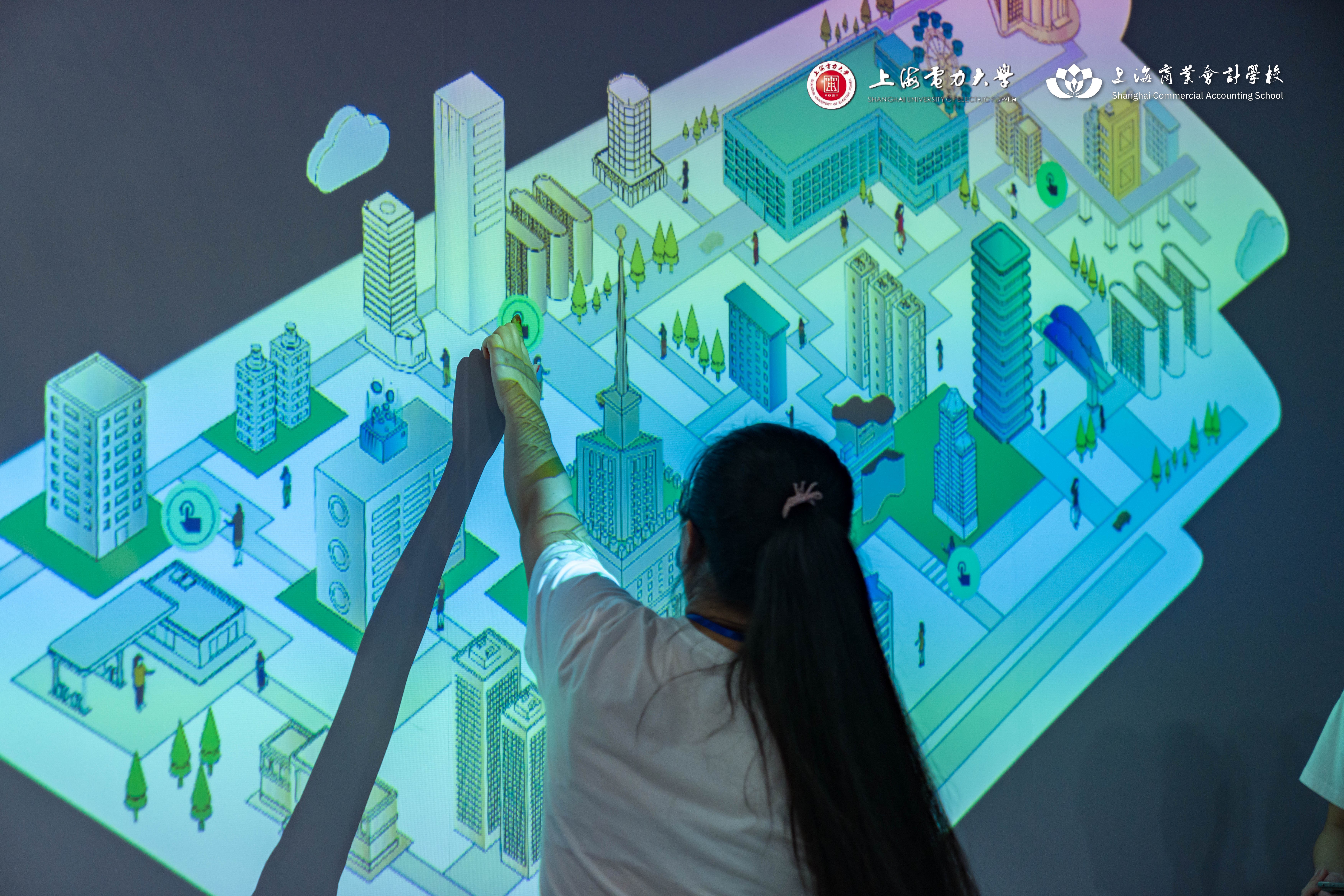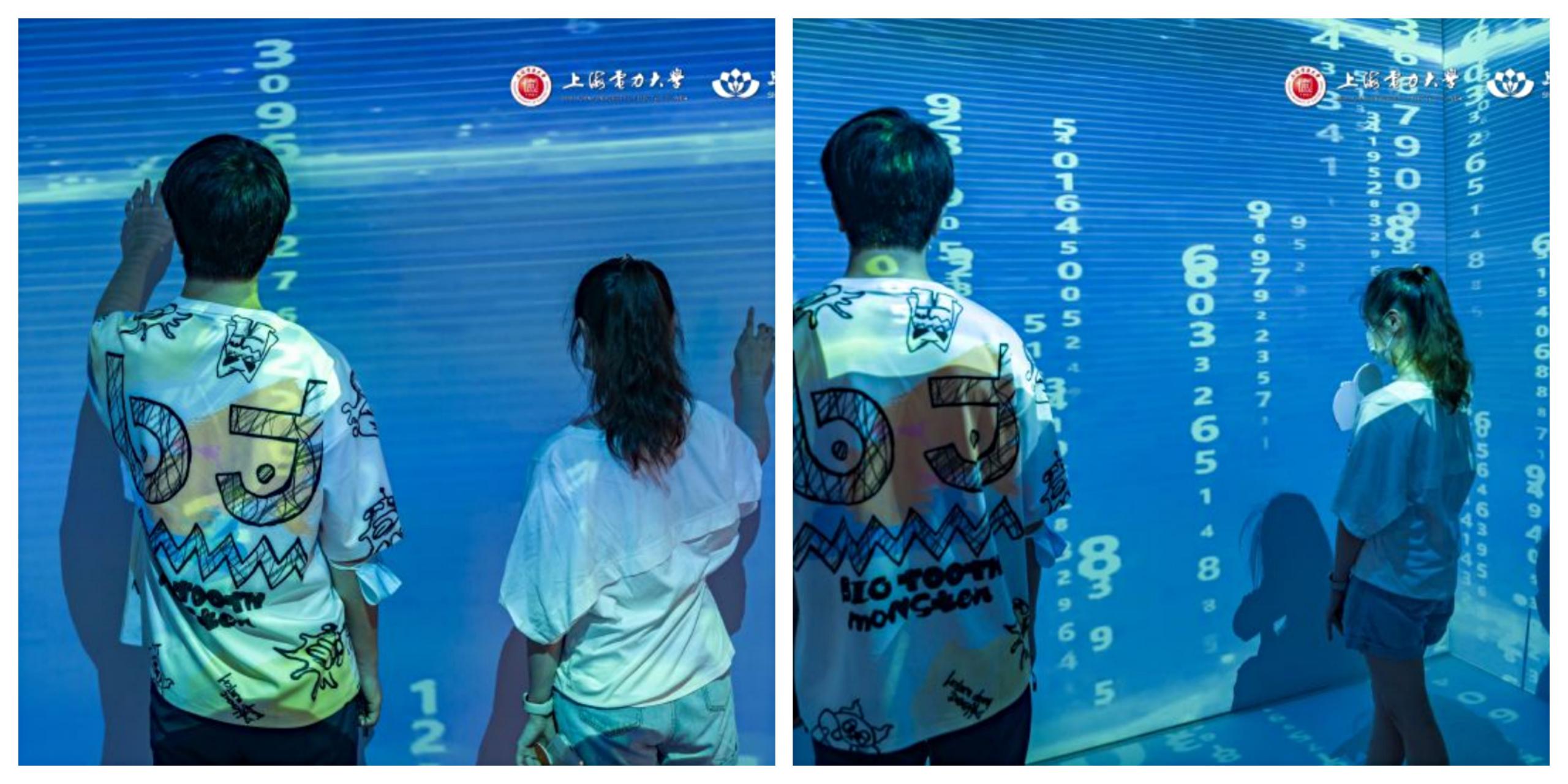 走进“登陆赛博安游”,学生以线上拍照打卡体验的方式,揭开了数字世界的神奇奥秘。蓝色的展厅犹如走进一个数字幻海,带给学生沉浸式的用户体验感。