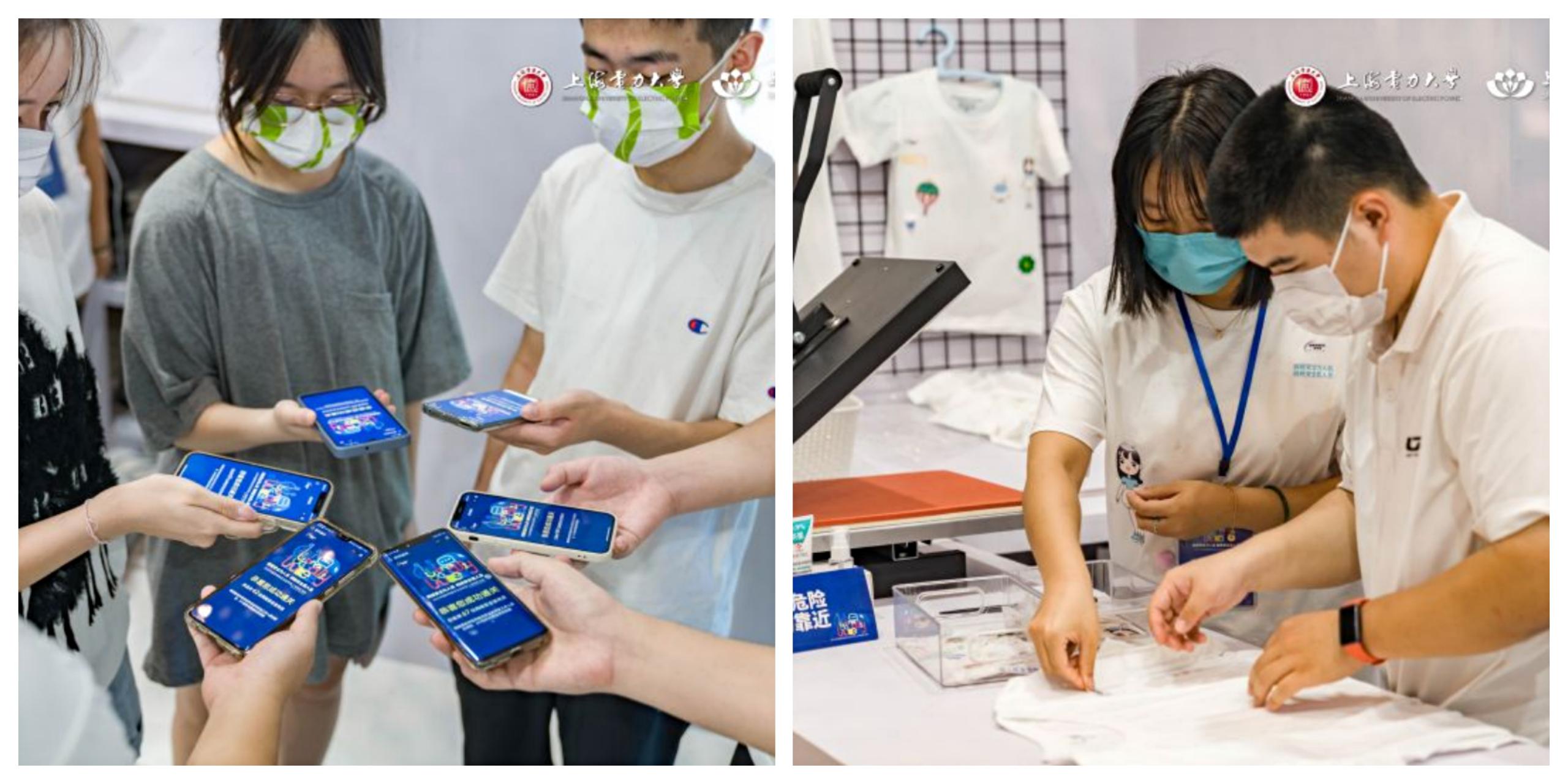 在完成8个任务打卡后,学生们顺利通关,并在现场制作一件“网络安全宣传大使T恤”。学生将现场提供的带有网络安全宣传语的魔术贴以及各种新奇的装扮点缀在T恤上,化身成为宣传网络安全的“大使”。