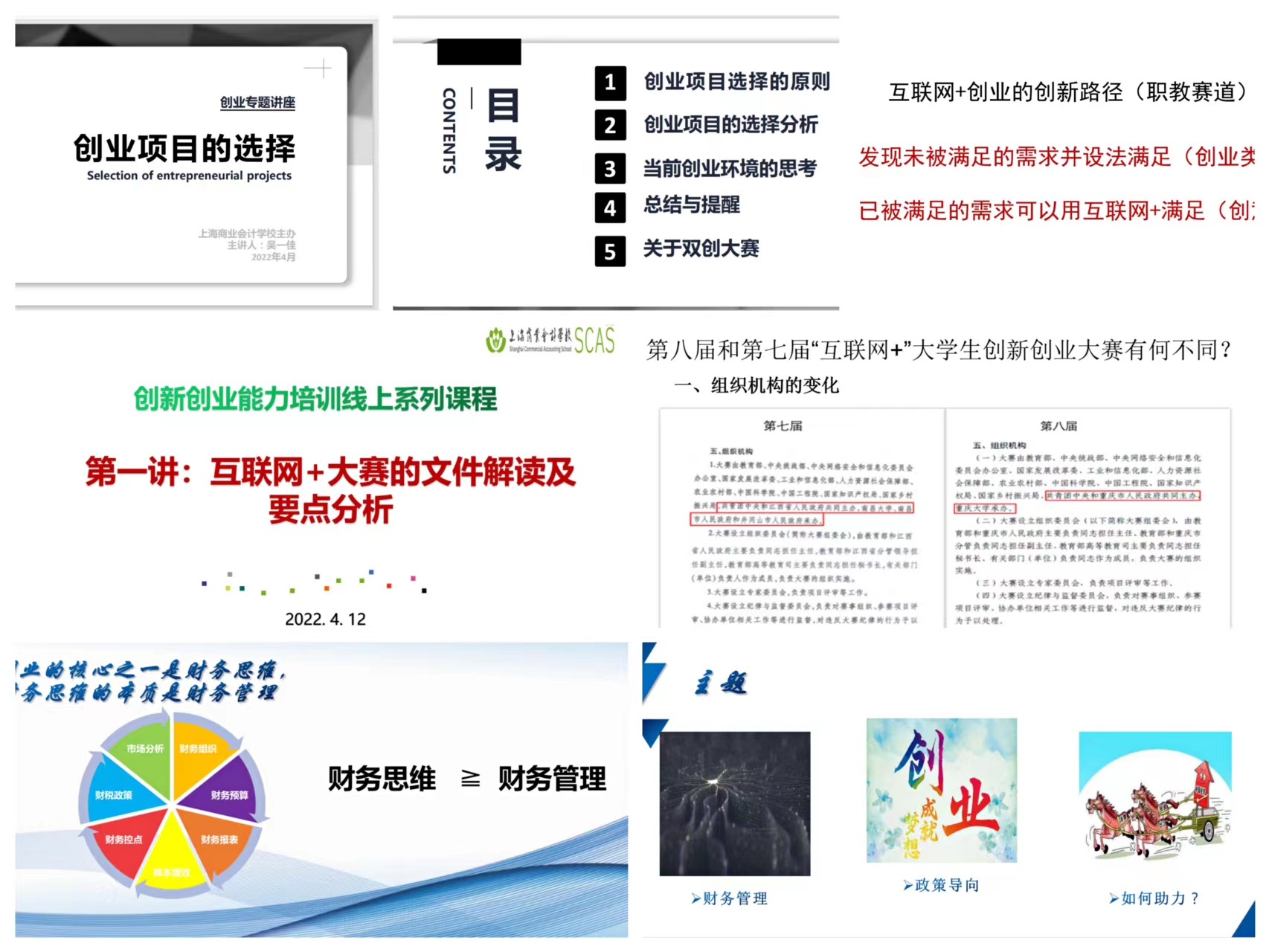 为开拓学生创新思维,培育学生创业能力,使学生掌握必备的双创理论知识,2022年4月中旬,在普陀区就业促进中心的大力支持下,由校学生科与实训培训中心精心策划与组织,开展校内学生创新创业能力线上培训系列课程。此次课程旨在培训和选拔优秀的双创团队,储备和挖掘更多的双创人才。培训采用以训促赛,以赛促学的形式,着眼于实效,准确定位,全面助力我校学生团队参加第八届“互联网+”大学生创新创业大赛上海赛区的选拔,进一步促进我校双创工作的发展。