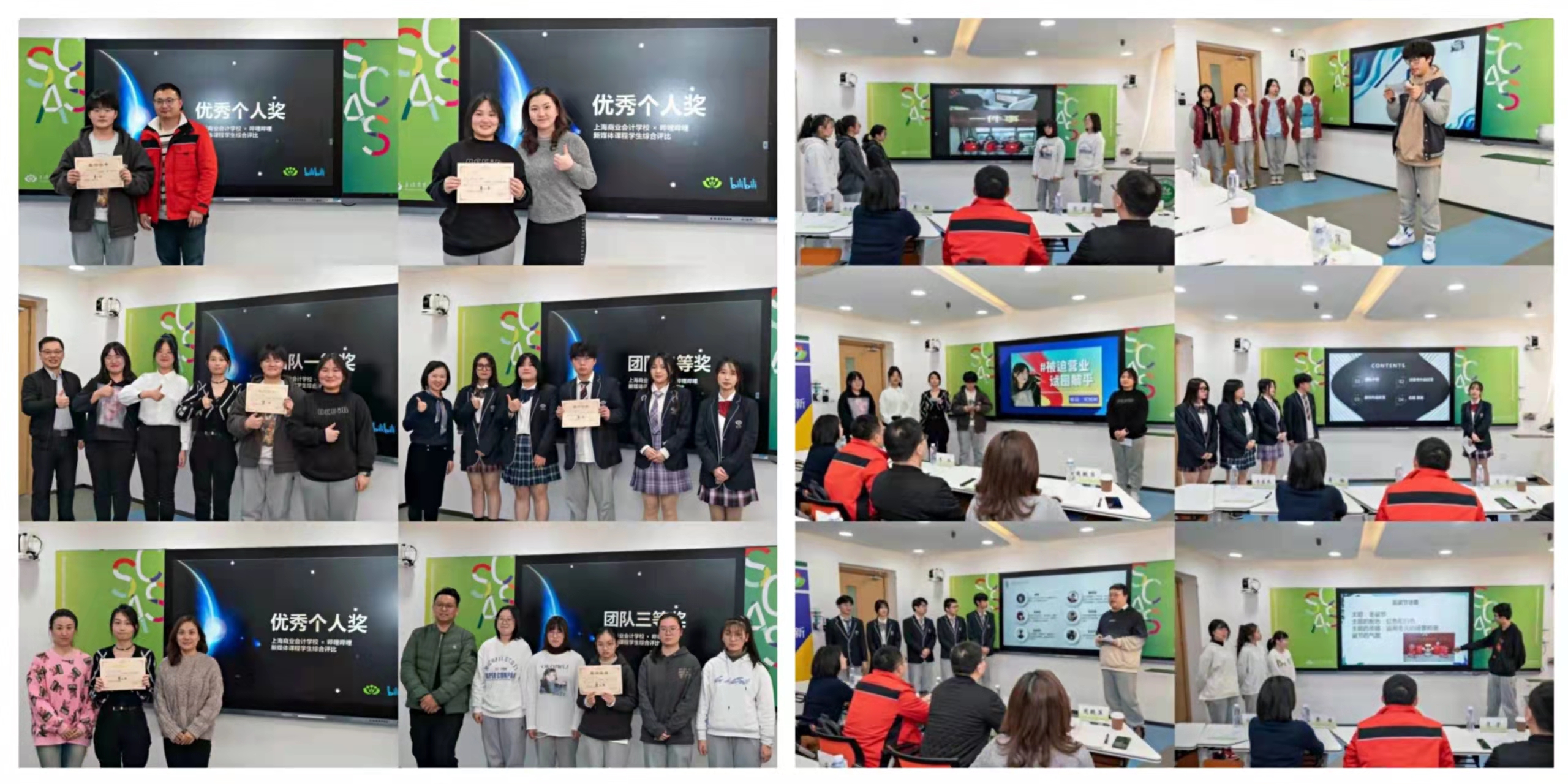 汇报结束,评委团评出了3个优秀团队以及3名优秀个人奖,纪委书记龚丽公布了最终结果,并由校领导、企业专家进行颁奖合影,实训导师黄烨对学生汇报作品进行了专业、细致的点评,并寄语同学们继续努力成为更优秀的自己。