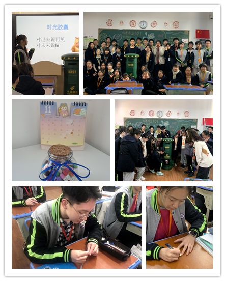 最后,在黄老师的引导下,同学们将“时光胶囊瓶”放入邮筒,寄往2024年的毕业季。届时,全班同学将再次打开邮筒,找到自己的时光胶囊,打开胶囊,展开纸条,看看许下的愿望是否已实现。