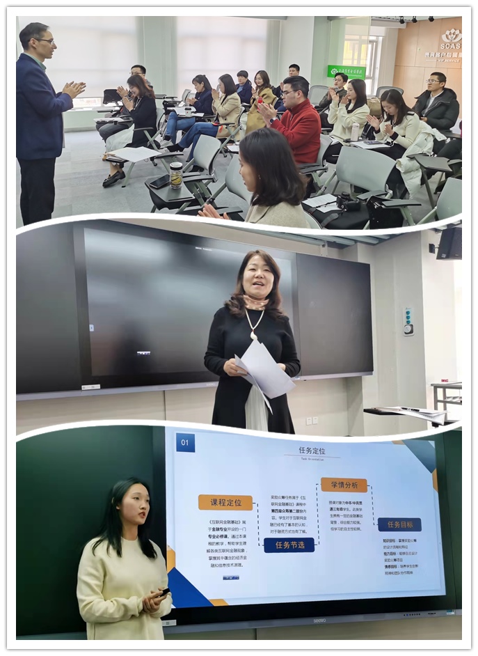为了促进经贸一教学部青年教师教学能力的提升,培养青年教师把握教材、处理教材的能力,提高课堂教学水平,达到以“说”促“教”的目的,11月26日下午,经贸一部青年教师说课比赛在金融实训室拉开帷幕。本次比赛经贸一部的储晨怡、何文超、金诗跃、姜兆秋、邱瑜琦、庄诺、万贵银7位青年教师参加了角逐,经贸一部魏强、张琦等老师担任评委,比赛还请到王洁、范荣两位校长担任特邀评委。