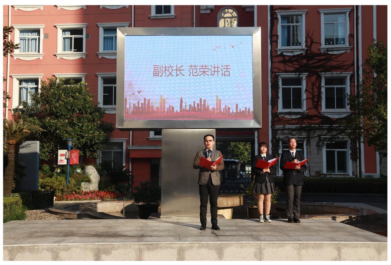 升旗仪式的最后,范荣副校长用看和听串联起关于青春和技艺的讲话。近段时间关于职业教育热议不断,职业教育前途广阔,大有可为,要培养更多高素质技术技能人才、能工巧匠、大国工匠,我们需要坚持和舞台,财经技能嘉年华的一系列活动让同学们更加认识自我、深入专业、了解职业。最后范荣副校长预祝每位财会学子都能在不同阶段取得进步,也希望同学们勤练技能,专注学习,磨练意志,参与公益,成就最好的自己。