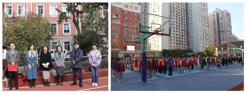本次升旗仪式由0552001叶梓睿和0552101蒋翁俊同学主持。光荣升旗手是来自0552002的罗海燕同学和0552003的郑涵童同学,0552002金家永、0552103朱麒融、0542101钱程菲、0582101刘哲四位同学担任了本次升旗仪式的护旗手。伴随着仪仗队的脚步声,五星红旗冉冉升起,在师生庄严的注目礼之下,那红色的旗帜随风飘扬。