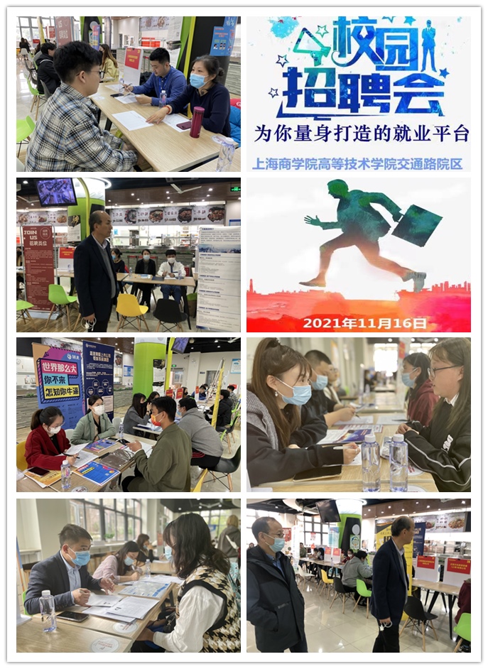 现场就业招聘气氛浓烈,用人单位在各自摊位前用易拉宝、宣传册展示着单位及岗位信息,热情接待每一位前来咨询应聘的学生;同学们也在经过认真思考后,克服紧张不安主动前往心仪的单位参加面试;就业办老师和毕业班辅导员也走进学生中为他们加油鼓劲;上海商学院高等技术学院傅建东院长、院区施汉忠副校长更是亲临招聘会现场给予关心指导。
