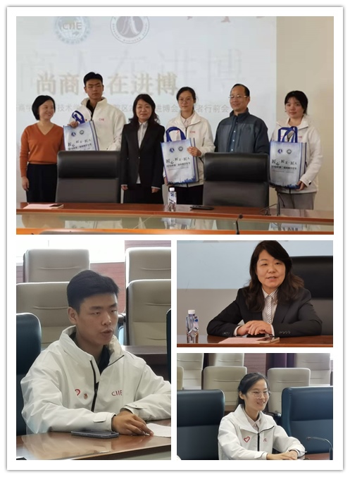 第四届中国国际进口博览会将于2021年11月5日--10日在上海举办。进博志愿者“小叶子”们出征在即。10月27日上午,上海商学院高等技术学院交通路院区召开一场简约而正式的行前会,专门为会计201班周大骞、徐欣悦和国商201班潘欣洋三位“小叶子”鼓劲加油,祝他们充分发扬志愿精神,以青春奋斗之我圆满完成志愿者工作,为国争光为学校争光。