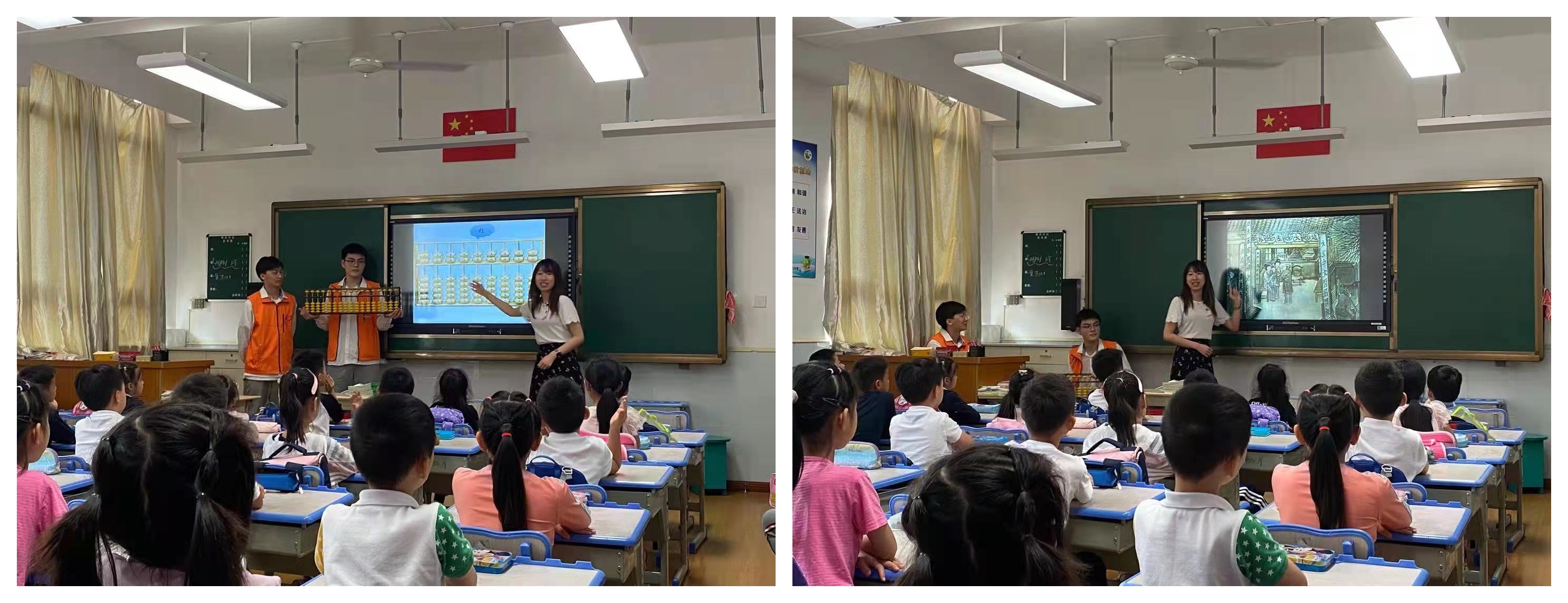 财信党支部很重视志愿者服务工作,为了能够立足发挥党支部专业特点和职业教育行业特点,同时进一步传播珠算文化,财信党支部的樊聪老师、顾莹莹老师以及0551901班级志愿者学生王耀国和王森于10月15日下午一点前往徽宁路第三小学的二年级2班开展一场生动有趣的珠算教学。本次活动旨在宣传珠算文化,让小学生认识珠算,了解珠算,弘扬祖国的传统文化。