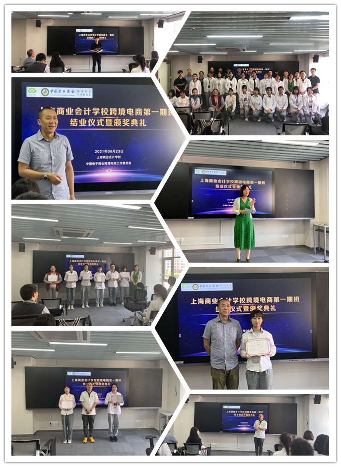 为提升学生专业实践的能力,上海商业会计学校市场营销(新零售)专业本学期开设了一门商务模拟公司的实践课程,以校企合作的形式送教上门。2021年6月23日下午13:00,学校跨境电商第一期商务模拟公司结业仪式暨颁奖典礼在学校3号楼5楼金融理财实训室举行。