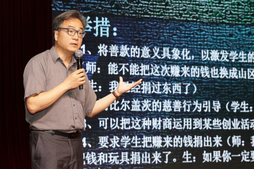 张鲁川老师的分享让人印象深刻,发人深省。他借助“义卖”案例深入浅出的剖析了班主任们在班级管理中出现的共性问题。他说:“德育不是“我说你听”的外部强加,道德需要经过学生理性检验和情感认同,才能最终成为学生的自我选择”,教育的作用不是强迫学生接受老师的观点,而是引导学生感悟到真善美,从而从内心认同并遵循。