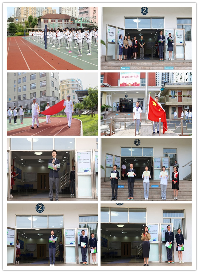 伴随着清晨的第一缕阳光照进荷花池,生机勃勃的校园又迎来了新的一周。2020年5月31日,上海商业会计学校财会教学部举行了“青春心向党 奋斗星光路”主题升旗仪式。校党委书记乔蔓菁、副校长王洁、副校长施汉忠、副校长范荣、纪委书记龚丽、财会教学部主任王莉萍以及副主任陆瑞雯出席本次升旗仪式,18贯通班和19、20级全体学生、班主任参加了升旗仪式。