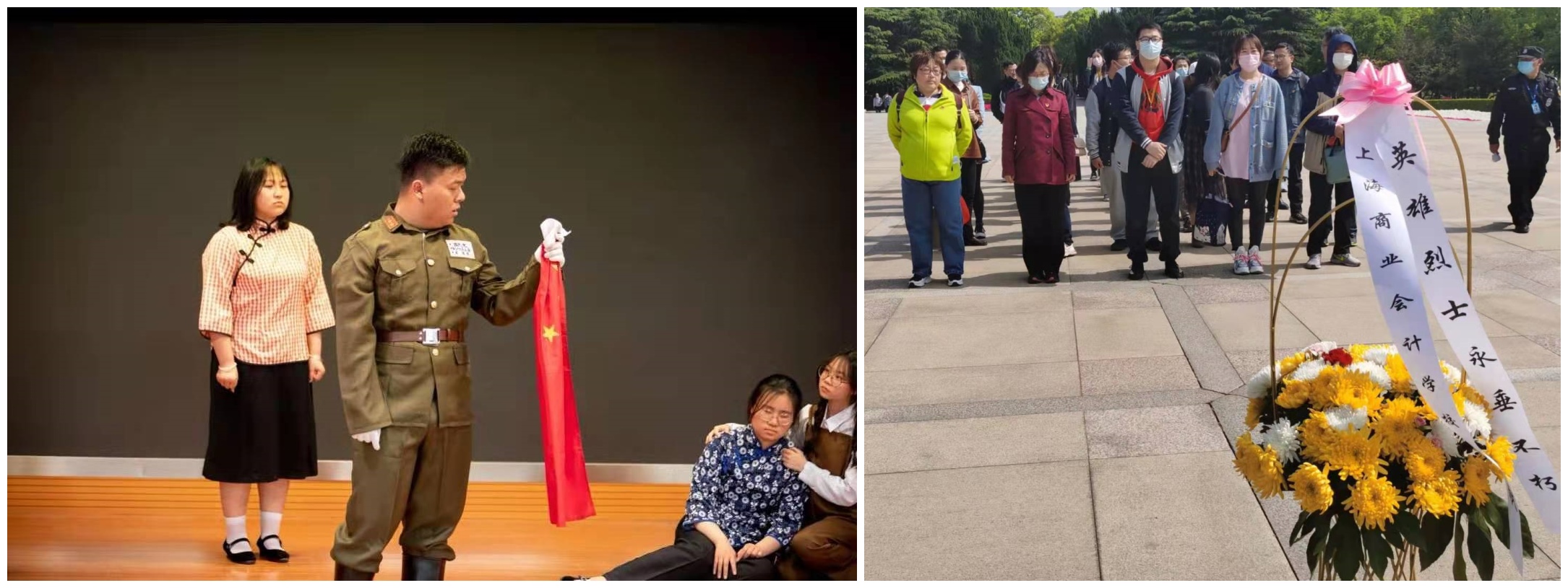 之所以要通过党内集中教育不断进行精神历练,目的就是要将学习和实践结合。师者,所以传道、授业、解惑者也。作为教学支部,承担着教书育人的重要职责,党员要时刻以学生为本,践行立德树人的教育初心,关心关爱每一个学生。在教学中,各专业积极开展课程思政的研究和实践探索,将学史育人落实到日常教学中去,以浸物细无声的方式引导学生树立正确的人生观、价值观、世界观。在德育工作中,用心开发对学生专业学习更有益、更受学生喜爱的项目和活动,比如开发双语红色故事戏剧课程、学生创新创业公益项目、在党史中学金融史、在党史中学廉洁、参观红色教育基地等原创精品活动,通过这些党建带团建活动,使学生也能够更乐于在党史学习中汲取智慧和力量,化被动学为主动学。