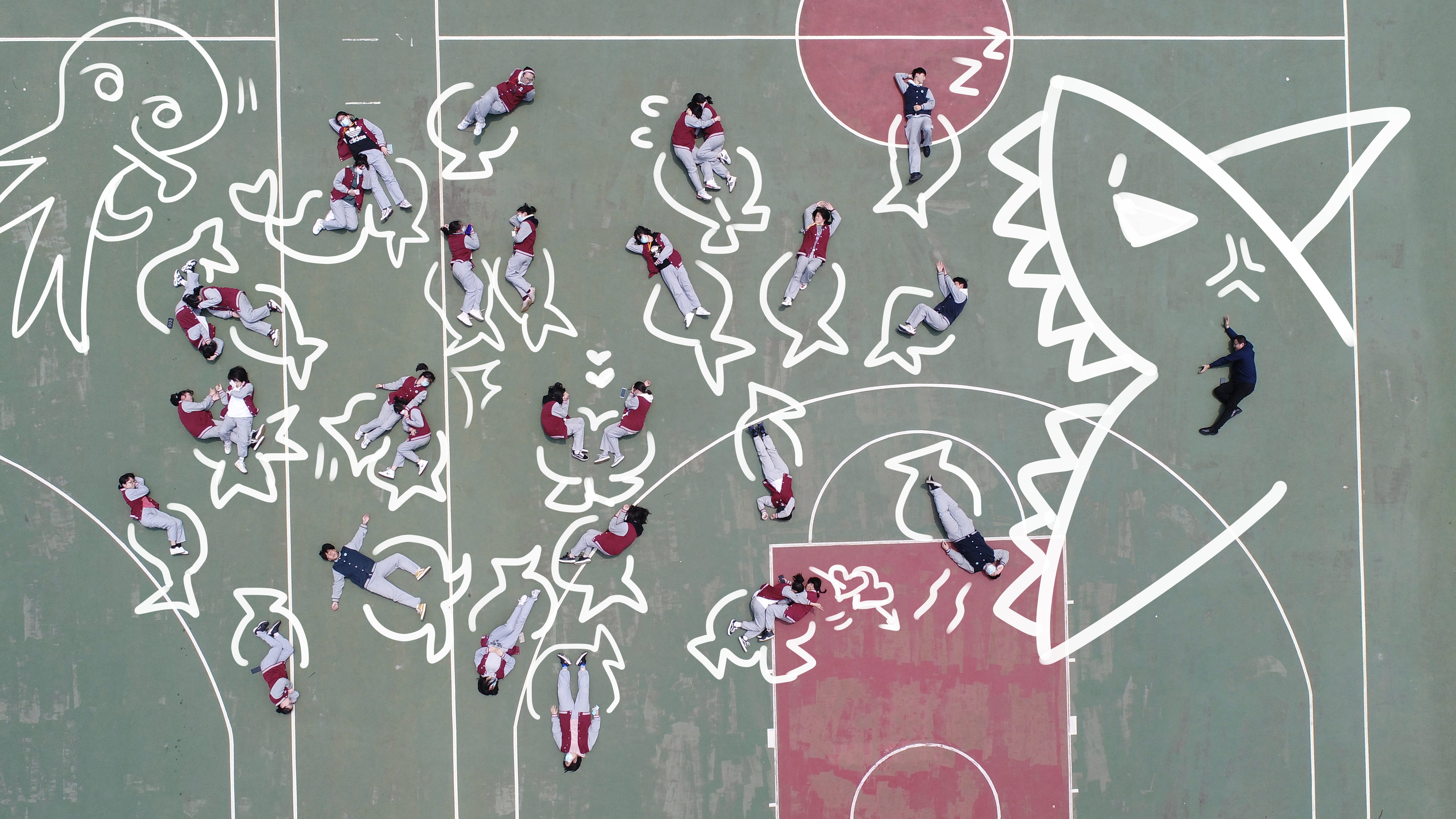 活动刚刚开始,就得到了全校各班的热烈响应,各班在班主任的带领下,集思广益、精心构思,结合个性特色的班级文化,定格住最有创意的班级集体照。有的班级同学穿着正装,对着镜头露出灿烂的笑容,散发着阳光正气。有的班级,用身体在操场上比了一个爱心,并且用无人机拍摄记录。还有的班级,用身体在操场上比画出自己的班级代号,并且熟练运用高超的PS技术在图片上增加创意。有些班级拉上老师做出各种搞怪的造型,有些班级为了摆出满意造型在操场上面拍摄一个多小时,有些班级则一遍遍重新拍摄,就为拍出心中最满意的“全家福”……