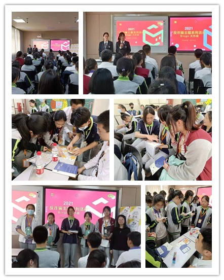 为营造我校良好的法制教育环境和氛围,2021年5月18日,在我校黄浦校区一号楼402,举行了Bingo大作战“防诈骗”主题系列活动。本次活动由校团委学习部长陈伊玲与主席魏之韵主持,上海教育报刊总社《成才与就业》杂志编辑部副主任孟优悠及校团委副书记茅智勤老师共同参加了本次活动。