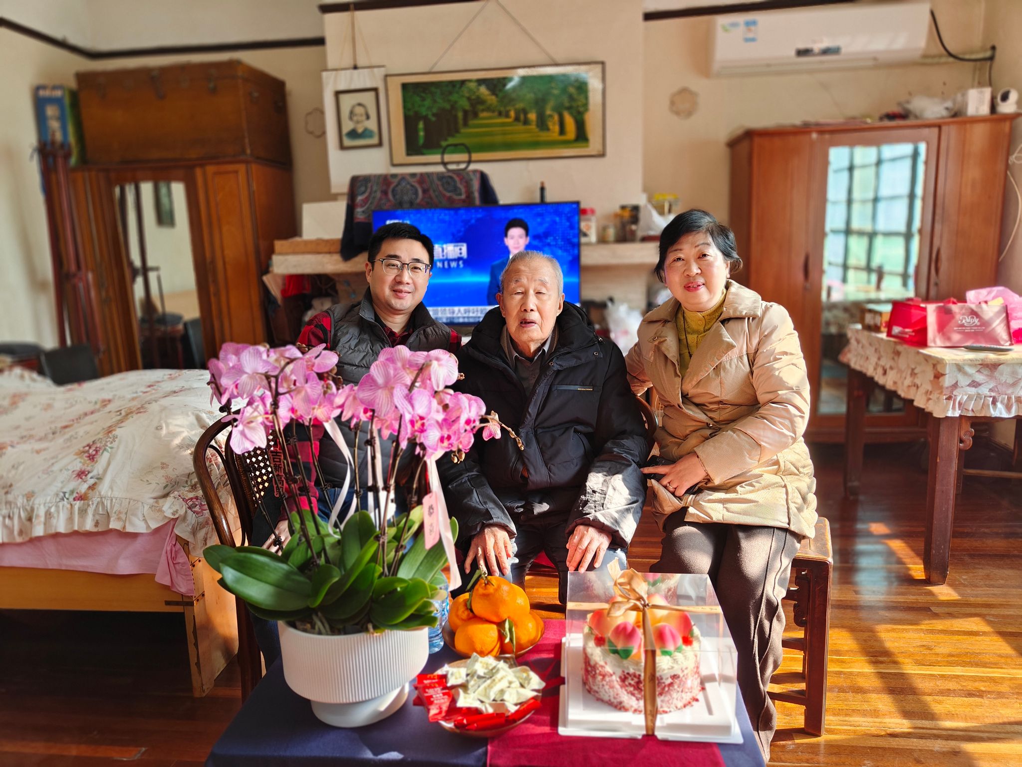 走访期间,恰逢离休干部李永藻98岁寿辰。党委书记陈震代表学校专程送上寓意美好的蝴蝶兰、生日蛋糕及节日慰问品,向李老祝寿。陈震详细询问李老的健康状况与生活情况,认真聆听他对学校未来发展的独到见解与宝贵建议,反复叮嘱保重身体、保持乐观心态,并郑重承诺,学校将持续做好各项服务保障工作,每年为李老庆祝生日,衷心祝愿他健康长寿、幸福安康。