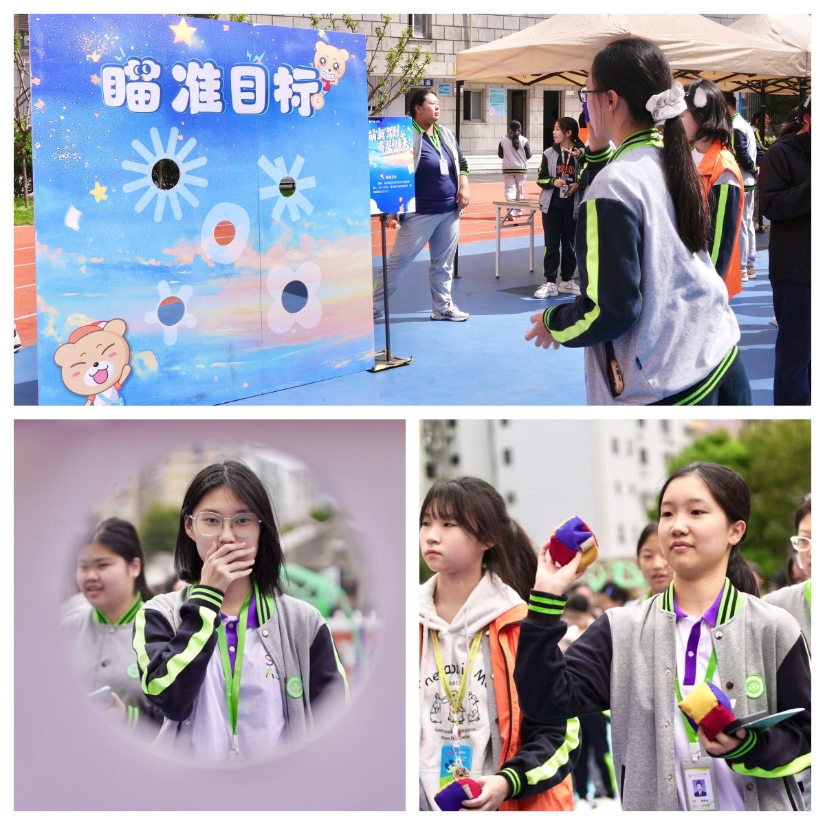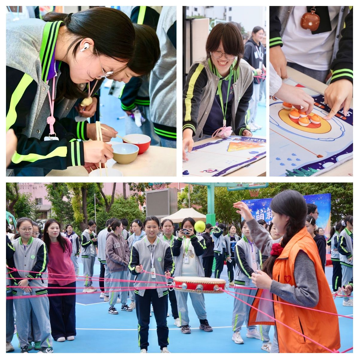 本次活动设置了多样的益智小游戏,涵盖瞄准目标、击鼓颠球、心灵手巧、桌面冰壶、平地投壶五个趣味项目,现场人气爆棚。趣味满满的“瞄准目标”区域,参与者站在划定区域外,攥着沙包紧盯篮筐,调整姿势后掷出,既考验精准度也打磨心态,喝彩声与惋惜声交织在一起,热闹非常。“击鼓颠球”场地旁,6人小组围拢成圈,有人攥绳端躬身,有人紧盯彩球喊“慢一点”,随着鼓面轻震,彩球腾空落下,生涩配合在几次调整中渐显默契,团队协作演绎得淋漓尽致。“心灵手巧”区域,围满跃跃欲试的同学,有人指尖捏筷子绷紧,目光锁定弹珠;有人深吸气后迅速夹起,动作轻缓专注。30秒倒计时里,弹珠碰撞瓷碗的轻响与“小心点”的提醒交织,有人因手滑滚落弹珠轻呼,也有人夹满后扬起笑意。桌面冰壶区域,同学们屏息凝神,冰壶被推后“嗖”地疾驰而去,现场静若落针,当冰壶精准停在圈心时,欢呼声四起。参与平地投壶游戏的同学轮流投箭,精准命中时掌声雷动,失误时则相互鼓励,考验手眼协调力,更锻炼心理素质与应变能力。