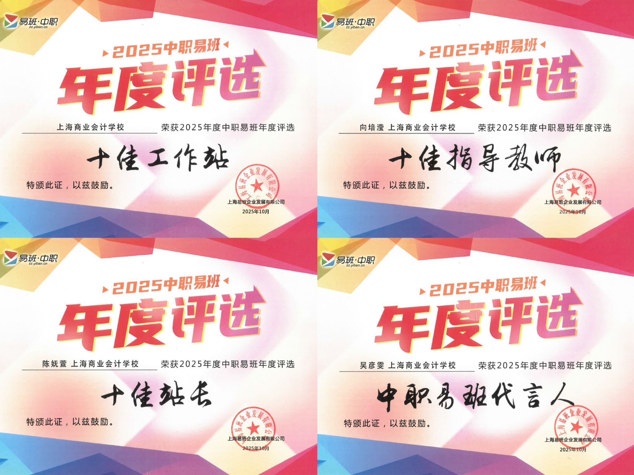 近日,2025年度上海市中职易班工作总结活动成功举办。本次活动旨在总结过去一年中职易班建设的成果,推动中职教育信息化发展。我校荣获多项荣誉:2025年度十佳工作站、十佳指导教师(向培滢)、十佳站长(2023级中高贯通金融1班 陈妩萱)以及中职易班代言人(2024级电子商务班 吴彦雯)。