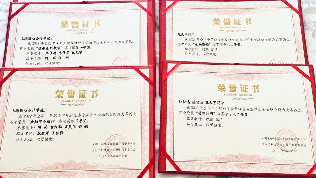 两校联合培养取得了丰硕的成果,在全国和上海市各类比赛中获得多种奖项。在2018年至今每年举办的上海市高中生经济论坛中,多位同学经过团队合作获得了特等奖、一等奖、“最佳学术奖”等称号;在全国金融职业技能比赛中获得“金融基础技能”模块一等奖,“证券模拟交易”模块一等奖等;在全国应用型人才综合技能大赛中获得二等奖;在第六届“科云杯”全国大学生本科组职业技能大赛中获得三等奖。