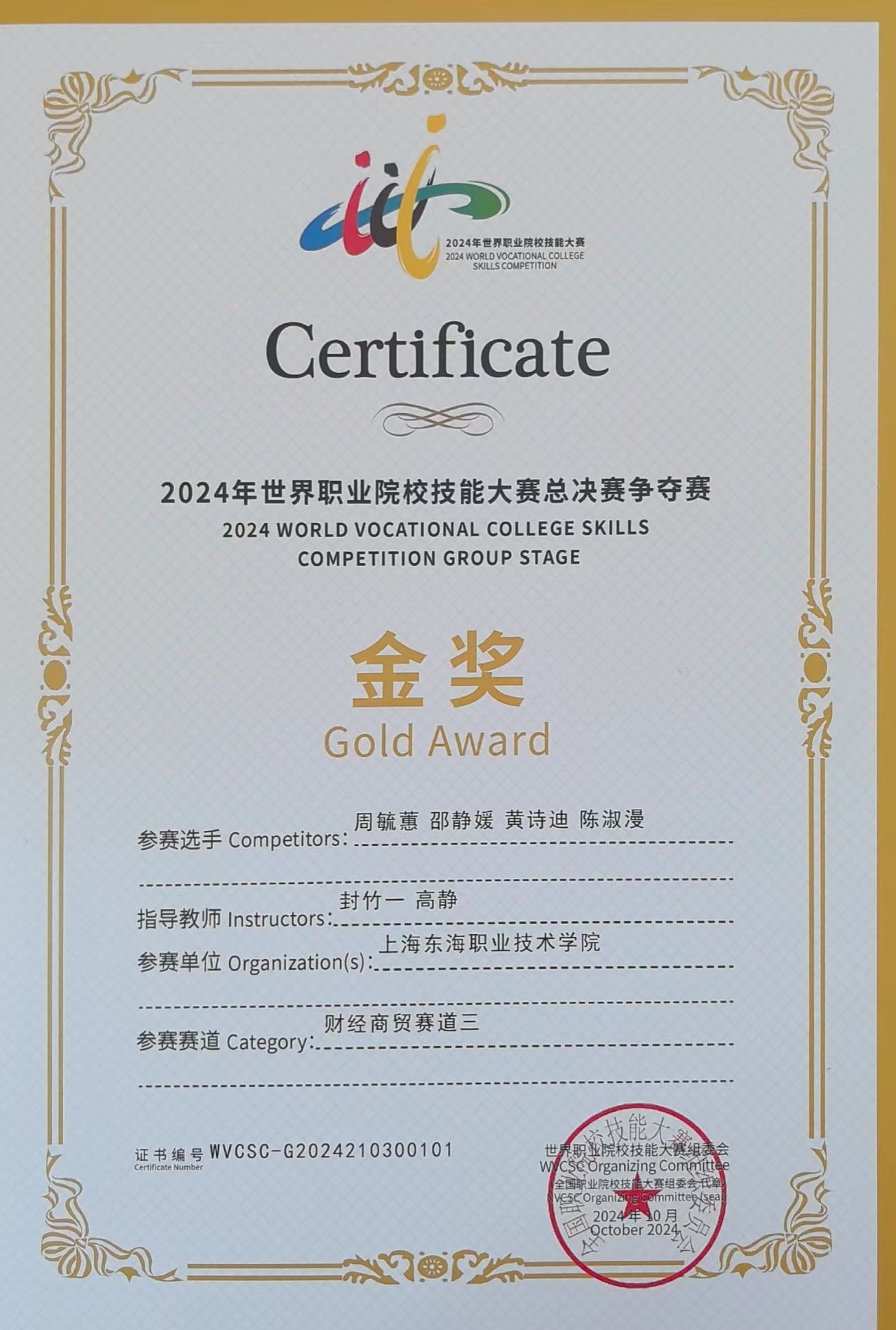 两校联合培养的学生荣获第46届世界技能大赛金牌;2024年世界职业院校技能大赛总决赛金奖;2024年JA中国学生公司大赛全国第三名及上海赛区第一名;第一届中国技能大赛国际货运代理赛项金牌;全国职业院校技能大赛关务技能项目团体一等奖;上海市星光计划职业技能大赛中获各级奖项。