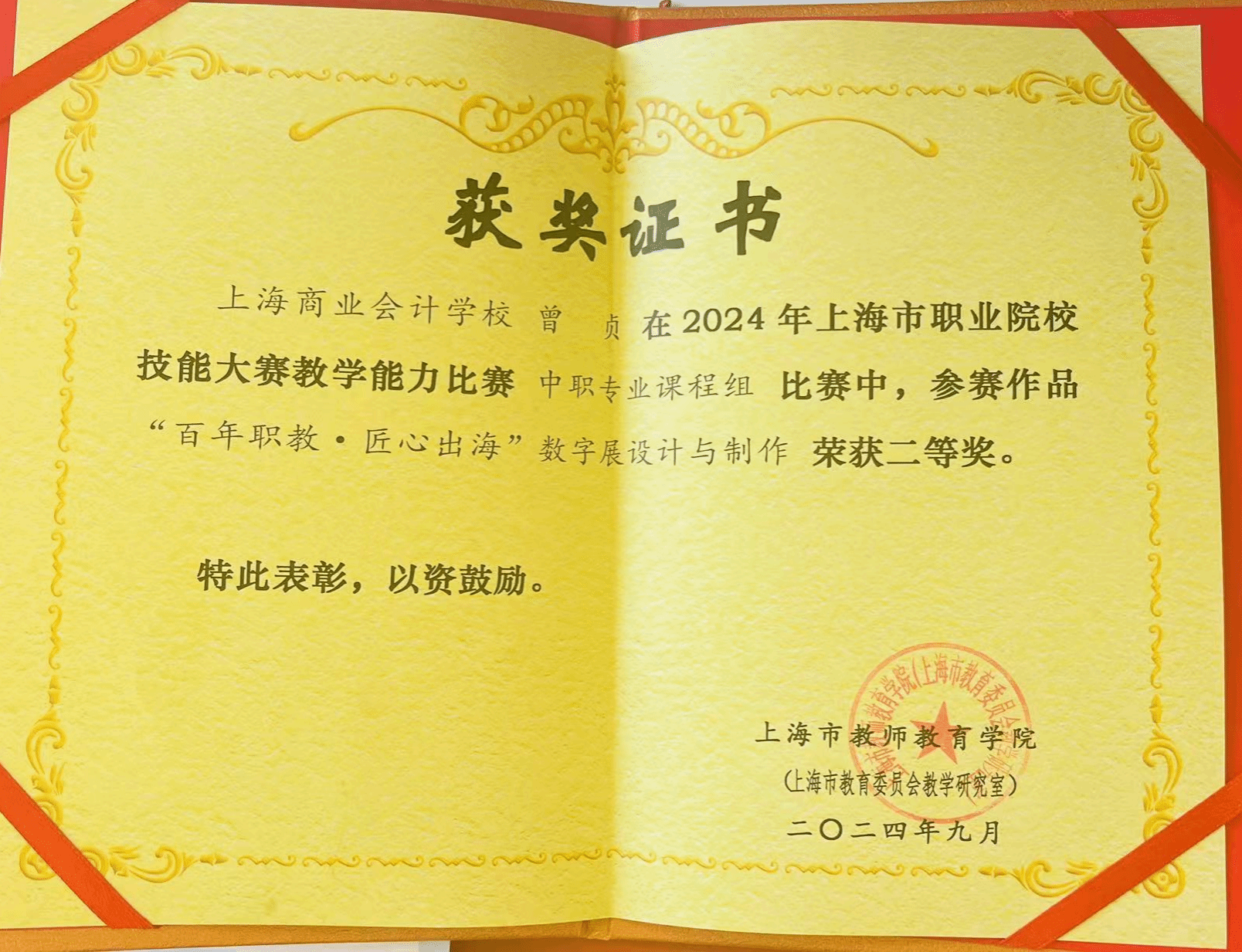 上海市中职教师市级企业实践学员优秀教学案例一等奖