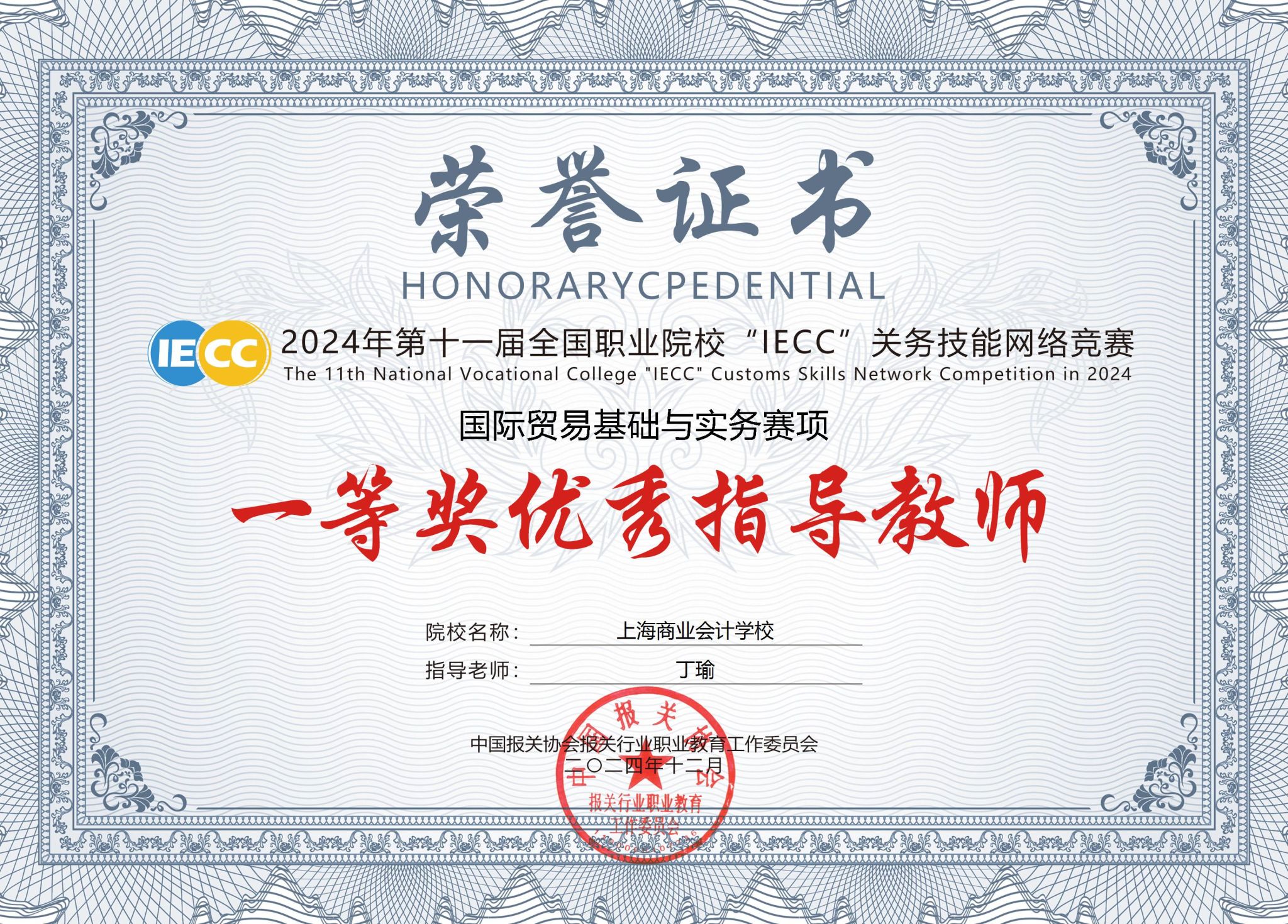 “IECC”全国职业院校关务技能竞赛团体二等奖和个人一、二、三等奖