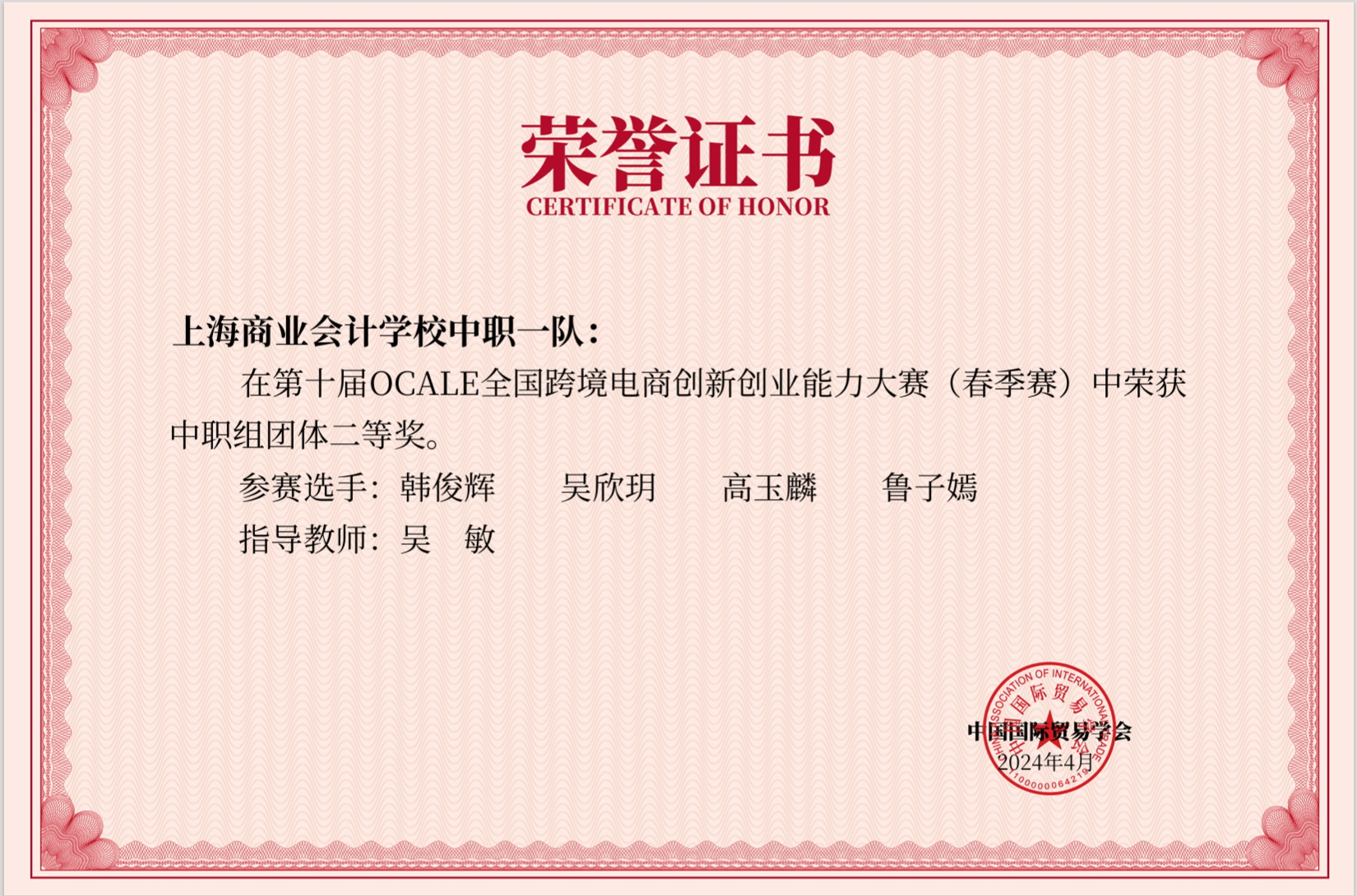 全国跨境电商创新创业能力大赛(春季赛)中职组团体二等奖