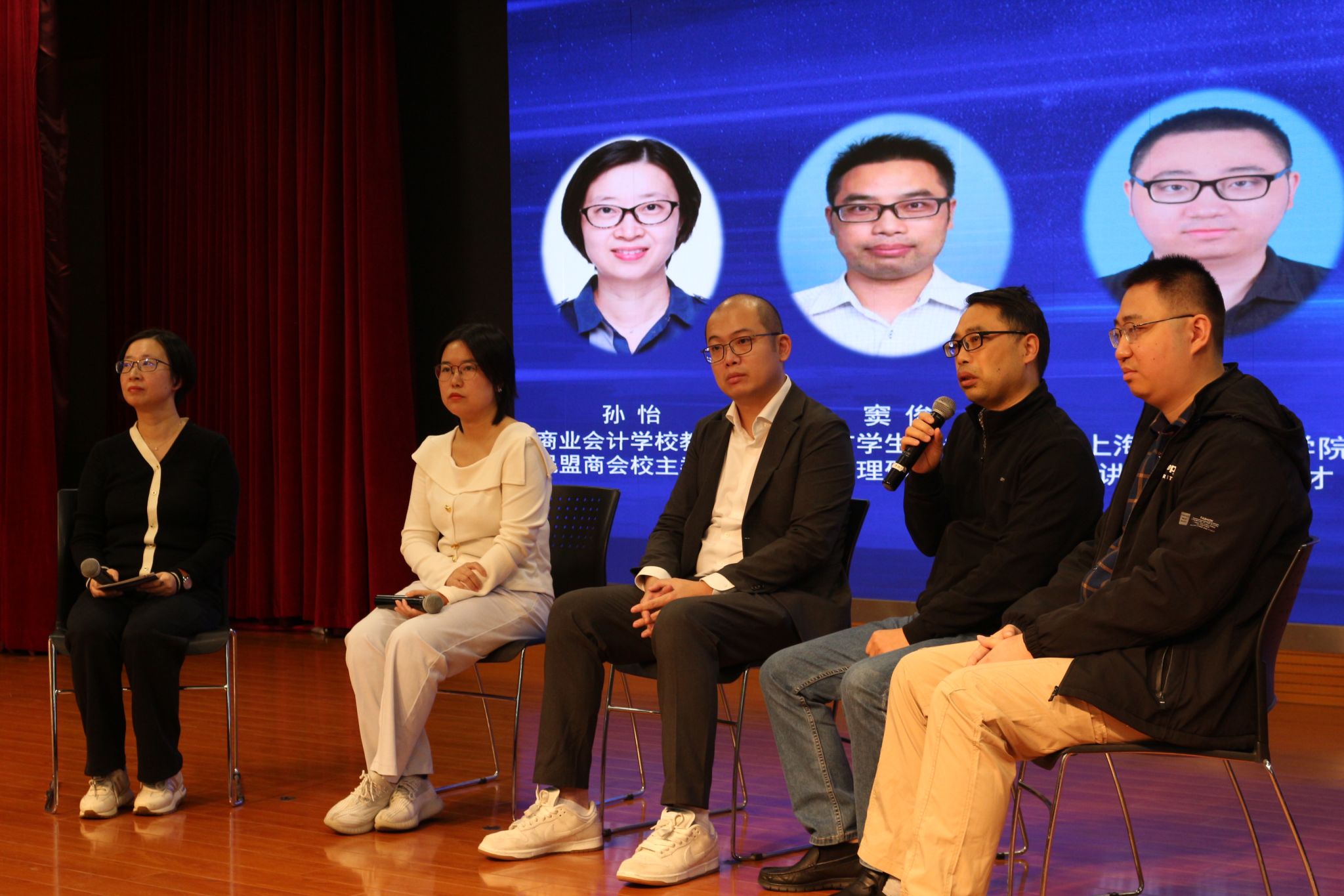 启航仪式上,精心组织了以“AI时代的职业规划与能力提升”为主题的圆桌对话,由民盟商会校主委孙怡主持。上海市学生事务中心助理研究员窦俊,上海大学管理学院讲师、浦江人才彭澜,上海九章之光教育科技有限公司总经理蒋世聪,元冲科技创始人、工信部工信人才与易华录联建大数据产业人才基地讲师五津等4位嘉宾受邀,同台答疑。
