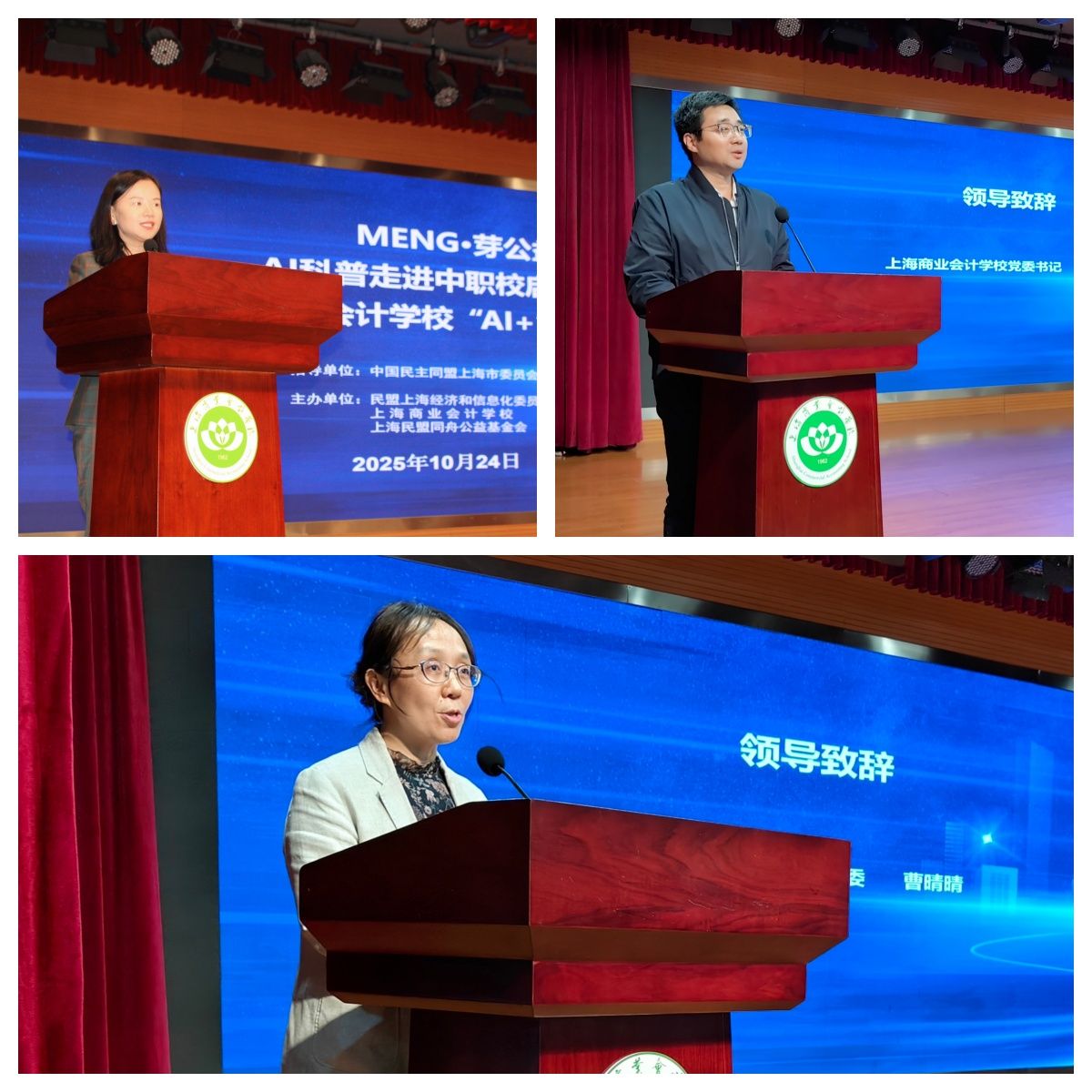 10月24日下午,由中国民主同盟上海市委员会指导,民盟上海经济和信息化委员会、上海商业会计学校、上海民盟同舟公益基金会联合主办的“MENG·芽公益AI科普走进中职校”启航仪式暨上海商业会计学校“AI+”产教融合活动,在我校隆重举办。这是“MENG·芽公益”AI科普走进中职校的启航,标志着该项活动正式迈入上海中职教育领域。